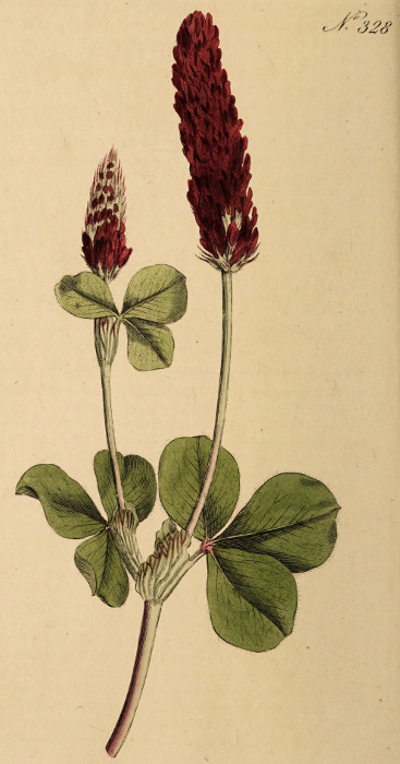 Of the annual species of Trifolium cultivated by the curious here, this is one of the largest, as well as one of the most shewy; the blossoms in the plants which we have had an opportunity of observing, have been of a bright crimson colour, and have therefore corresponded badly with the name of incarnatum, originally applied to the plant by some of the old botanists, and adopted by Linnæus; like other Trefoils with red flowers, the blossoms are doubtless found with different shades of colour, and sometimes wholly white.