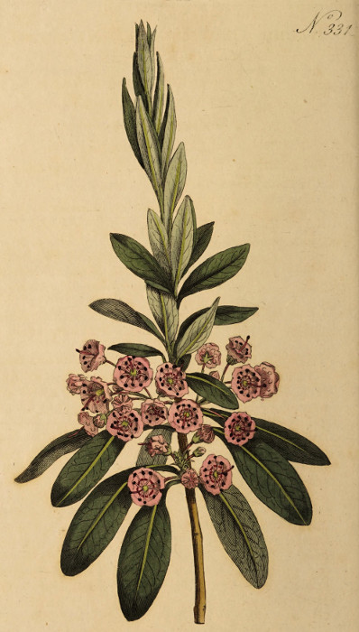 KALMIA angustifolia foliis lanceolatis, corymbis lateralibus. Linn. Syst. Veget. ed. 14. Murr. p. 404. Ait. Kew. v. 2. p. 64. Gronov. Fl. Virg. p. 65.