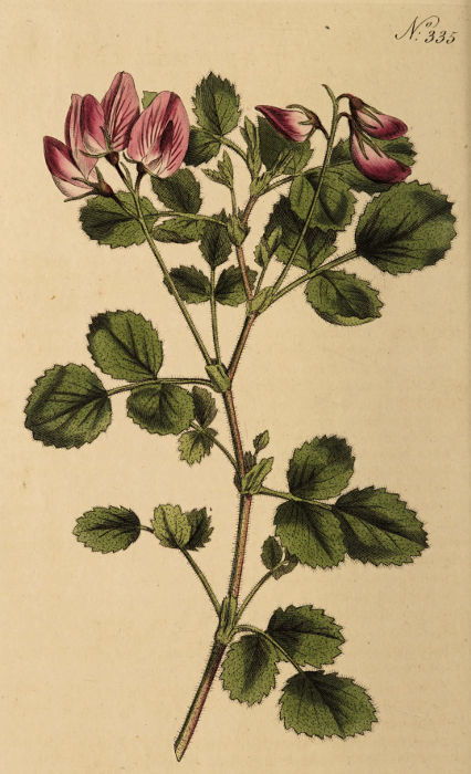 ONONIS Natrix pedunculis unifloris aristatis, foliis ternatis viscosis stipulis integerrimis caule fruticoso. Linn. Syst. Vegetab. ed. 14. Murr. p. 653. Ait. Kew. v. 3. p. 24.