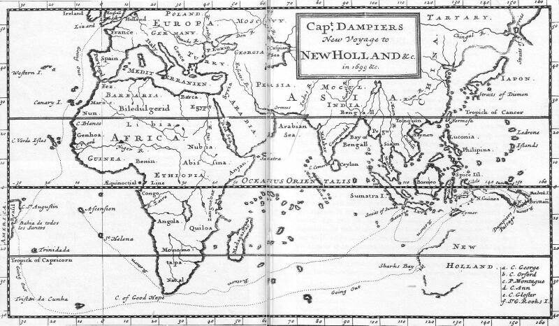 MAP. CAPTAIN DAMPIER'S NEW VOYAGE TO NEW HOLLAND ETC. IN 1699 ETC.