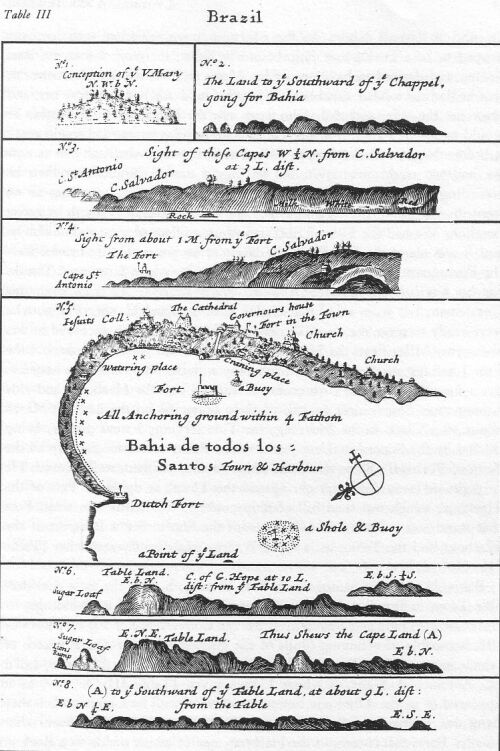 Wherein are described, The Canary Islands, the Isles of Mayo and St. Jago. The Bay of All-Saints, with the forts and town of Bahia in Brazil. Cape Salvador. The winds on the Brazilian coast. Abrolho Shoals. A table of all the variations observed in this voyage. Occurrences near the Cape of Good Hope. The course to New Holland. Shark's Bay. The isles and coast, etc. of New Holland.