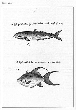FIGURE 4: A FISH CALLED BY THE SEAMEN THE OLD WIFE. FIGURE 5: A FISH OF THE TUNNY KIND TAKEN ON THE COAST OF NEW HOLLAND.