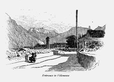 The road became a street and ceased to be so with an abruptness that admitted nothing of suburban hesitation or compromise, and Villeneuve, as far as it went, was a solid wall of houses on either side. It was called Villeneuve because it was so very, very old; and in the level beyond it is placed the scene of the great Helvetian victory over the Romans, when the Swiss made their invaders pass under the yoke. I do not know that Villeneuve witnessed that incident, but it looks and smells old enough to have done so. It is reasonably picturesque in a semi-Italian, semi-French fashion, but it is to the nose that it makes its chief appeal. Every house has a cherished manure heap in its back yard, symmetrically shaped, with the projecting edges of the straw neatly braided: it is a source of family pride as well as profit. But it is chiefly the odor of world-old human occupation, otherwise indescribable, that pervades the air of Villeneuve, and makes the mildest of foreign sojourners long for the application of a little dynamite to its ancient houses. Our towns are perhaps the ugliest in the world, but how open to the sun and wind they are! how free, how pure, how wholesome!