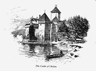 Whenever it came out, or rather whenever the rain stopped, we pursued our explorations of the neighborhood. It had many interesting features, among which was the large Hôtel Byron, very attractive and almost empty, which we passed every day on our way to the post-office in Villeneuve, and noted two pretty American shes in eye-glasses playing croquet amid the wet shrubbery, as resolutely cheerful and as young-manless as if they had been in some mountain resort of our own. In the other direction there were simple villas dropped along the little levels and ledges, and vineyards that crept to the road's edge everywhere. There was also a cement factory, busy and prosperous; and to make us quite at home, a saw-mill. Above all, there was the Castle of Chillon; and one of the first Sundays after our arrival we descended the stone staircased steps of our gardened terrace, dripping with ivy and myrtle, and picked our steps over the muddy road to the old prison-fortress, where, in the ancient chapel of the Dukes of Savoy, we heard an excellent sermon from the pasteur of our parish. The castle was perhaps a bow-shot from our pension: I did not test the distance, having left my trusty cross-bow and cloth-yard shafts in Boston; but that is my confirmed guess. In point of time it is much more remote, for, as the reader need not be reminded, it was there, or some castle like it, almost from the beginning, or at least from the day when men first began to fight for the possession of the land. The lake-dwellers are imagined to have had some sort of stronghold there; and it is reasonably supposed that Romans, Franks, and Burgundians had each fortified the rock. Count Wala, cousin of Charlemagne, and grandson of Charles Martel, was a prisoner in its dungeon in 830 for uttering some words too true for an age unaccustomed to the perpetual veracity of our newspapers. Count Wala, who was also an abbot, had the misfortune to speak of Judith of Bavaria as "the adulterous woman," and when her husband, Louis le Debonair, came back to the throne after the conspiracy of his sons, the lady naturally wanted Wala killed; but Louis compromised by throwing him into the rock of Chillon. This is what Wala's friends say: others say that he was one of the conspirators against Louis. At any rate, he was the first great captive of Chillon, which was a political prison as long as political prisoners were needed in Switzerland. That is now a good while ago.