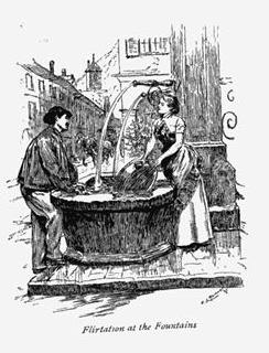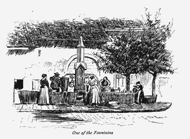 On week-days a cart sometimes passed through Villeneuve with a most disproportionate banging over the cobble-stones, but usually the walls reverberated the soft tinkle of cow-bells as the kine wound through from pasture to pasture and lingered at the fountains. On Sundays the street was reasonably full of young men in the peg-top trousers which the Swiss still cling to, making eyes at the girls in the upper windows. These were the only times when I saw women of any age idle. Sometimes through the open door I caught a glimpse of a group of them busy with their work, while a little girl read to them. Once in a crowded café, where half a hundred men were smoking and drinking and chattering, the girl who served my coffee put down a volume of Victor Hugo's poems to bring it. But mostly their literary employments did not go beyond driving the cows to pasture and washing clothes in the lake, where they beat the linen with far-echoing blows of their paddles. They helped to make the hay on the marshes beyond the village, and they greatly outnumbered the men in the labors of the vintage. They were seldom pretty either in face or figure; they seemed all to have some stage of goitre; but their manners were charming, and their voices, as I have said, angelically sweet. Our pasteur's wife said that there was a great deal of pauperism in Villeneuve, "because of the drunkenness of the men and the disorder of the women;" but I saw only one man drunk in the streets there, and what the disorders of the women were I don't know. Possibly their labors in the field made them poor house-keepers, though this is mere conjecture. Divorce is theoretically easy, but the couple seeking it must go before a magistrate every four months for two years and insist that they continue to desire it. This makes it rather uncommon.