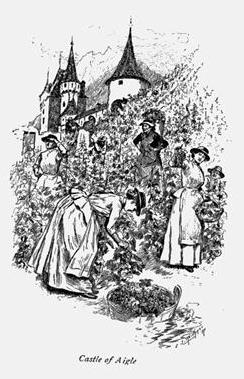 Another day mademoiselle did us the pleasure to take us to her sister, married, and living at Aigle—a clean, many-hotelled, prosperous town, a few miles off, which had also the merit of a very fine old castle. We found our friends in an apartment of a former convent, behind which stretched a pretty lawn, with flowers and a fountain, and then vineyards to the foot of the mountains and far up their sides. We entered the court by a great stone-paved carriage-way, as in Italy, and we found the drawing-room furnished with Italian simplicity, and abounding in souvenirs of the hostess's long Florentine sojourn; but it was fortified against the Swiss winter by the tall Swiss stove. The whole family received us, including the young lady daughter, the niece, the well-mannered boys and their father openly proud of them, and the pleasant young English girl who was living in the family, according to a common custom, to perfect her French. This part of Switzerland is full of English people, who come not always for the French, but often for the cheapness which they find equally there.
