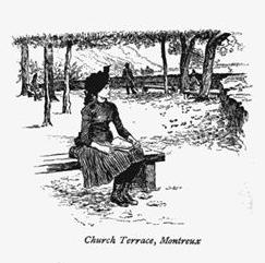 Besides the foreigners, there is not much to see at Montreux, though one must not miss the ancient church which looks out from its lofty place over the lake, and offers the visitor many seats on its terrace for the enjoyment of the same view. The day we went he had pretty well covered the gravel with grape-skins; but he had left the prospect undisturbed.