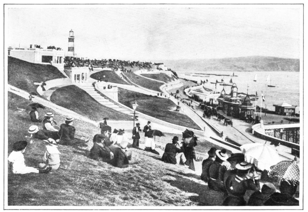 sterile effect. At Plymouth there was so much to remind me of so much else that it was a relief to be pretty promptly confronted on the Hoe with something so positive, so absolute as a Bath chair, which at the worst could only remind me of something in literature. A stubby old man was tugging it over the ground slowly, as if through a chapter of Dickens; and a wrathful-looking invalid lady sat within, just as if she had got into it from a book. There was little to recall anything else in the men strolling about in caps and knickerbockers, with short pipes in their mouths, or, equally with short pipes, wheeling back and forth on bicycles. There were a few people in top-hats, who had unmistakably the air of having got them out for Sunday; though why every one did not wear them every day in the week was the question when we presently saw a shop-window full of them at three and sixpence apiece.