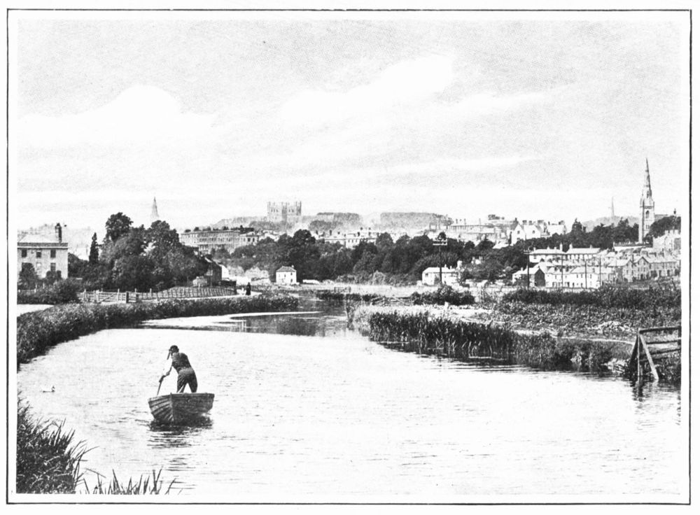 I suppose it would not be good taste to boast of the intimacy I enjoyed with the clergy in the neighborhood of the cathedral, by favor of their translation into a region much remoter than the past. Without having the shadow of acquaintance with them and without removing them for an instant from their pleasant houses and gardens in the close at Exeter, I put them back a generation, and met them with familiar ease in the friendly circumstance of Trollope’s many stories of cathedral towns. I am not sure they would have liked that if they had known it, and certainly I should not have done it if they had known it; but as it was I could do it without offence. When we could rend ourselves from the delightful company of those deans, and canons, and minor canons, and prebendaries, with whom we really did not pass a word, we went a long idle walk to an old-fashioned part of the town overlooking the Exe from the crest of a hill, where certain large out-dated mansions formed themselves in a crescent. We instantly bought property there in preference to any more modern neighborhood, and there our subliminal selves remain, and stroll out into the pretty park and sit on the benches, and superintend the lading and unlading of the small craft from foreign ports in the old ship-canal below: the oldest ship-canal in the world, indeed, whose beginnings Shakespeare was born too late to see. We do not find the shipping is any the less picturesque for being much entangled in the net-work of railroad lines (for{35} Exeter is a large junction), or feel the sticks and spars more discordant with the smoke and steam of the locomotives through which they pierce, than with the fine tracery of the trees farther away.