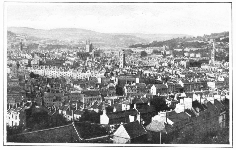 When, however, you considered the outside of our hotel, you would have been sorry to have it in any wise Americanized. The front of it was on Pulteney Street, where it leaves that dear Laura Place which blossomed to our fancy with the fairest flowers of literary association; but at the back of it there was a real garden, and the gardens of other houses backing upon it, and the kitchen doors of these houses had pent-roofs which formed sunny exposures for cats of the finest form and color. When there was no sun there were no cats; but they could not take the rest of the prospect into the warm kitchens (I suppose that even in England the kitchens must be warm) with them, and so we had it always before our eyes. With gardens and little parks, and red-tiled house-roofs, bristling with chimney-pots and church-spires, it rose to a hemicycle of the beautiful downs, in whose deep hollows Bath lies relaxing in her faint air; and along the top the downs were softly wooded, or else they carried deep into the horizon the curve of fields and pastures, broken here and there by the stately bulk of some mansion set so high that no Bath-chairman could have been induced by love or money to push his chair to it. All round Bath these downs (a contradiction in terms to which one resigns one’s self with difficulty in the country where they abound) rise, like the walls of an immense scalloped cup, and the streets climb their slope, and can no otherwise escape in the guise of country roads, except along the bank of the lovely Avon. By day, except when a