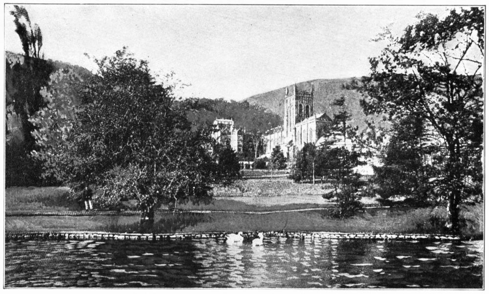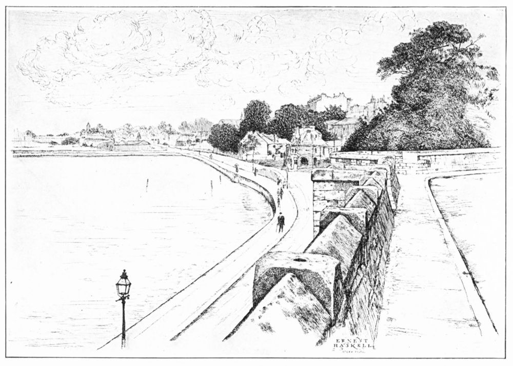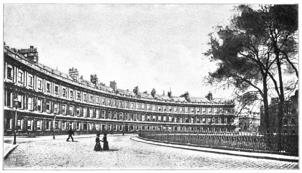 Many very nice people must live there yet, but it has somewhat gone off into business of the quieter professional type, and I would not swear that behind the tracery of a transom here or there I did not find a lurking suggestion of Apartments. I am quite ready to{52} make oath to at least one such suggestion in the very centre of Lansdowne Crescent, where I was about buying property because of its glorious site and its high, pure air. I instantly transferred my purchase to the Royal Crescent, where I now have an outlook forever over the new Victoria Park and down into the valley of the Avon, with the river running as of old between fields and pastures in a landscape of insurpassable loveliness.