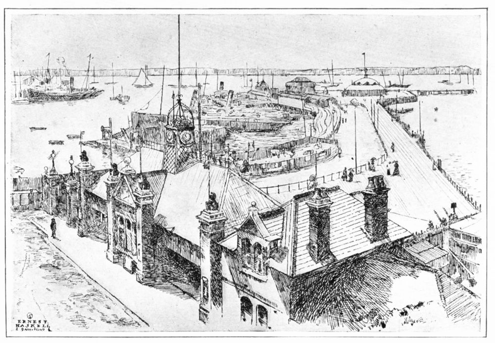 Probably the traveller who wishes for a just impression of the Plymouth of 1620 will get it more reliably somewhat away from the immediate scene of the Mayflower’s departure. There are old houses abundantly overhanging their first stories, after the seventeenth-century fashion, in the pleasanter streets which keep{16} aloof from the water. If he is more bent upon a sense of modern Plymouth he will do best to visit her group of public edifices, the Guild Hall, the Law Courts, the Library, and see all that I did not see of the vast shipping which constitutes her one of the greatest English ports, and the government works which magnify her importance among the naval stations of the world.