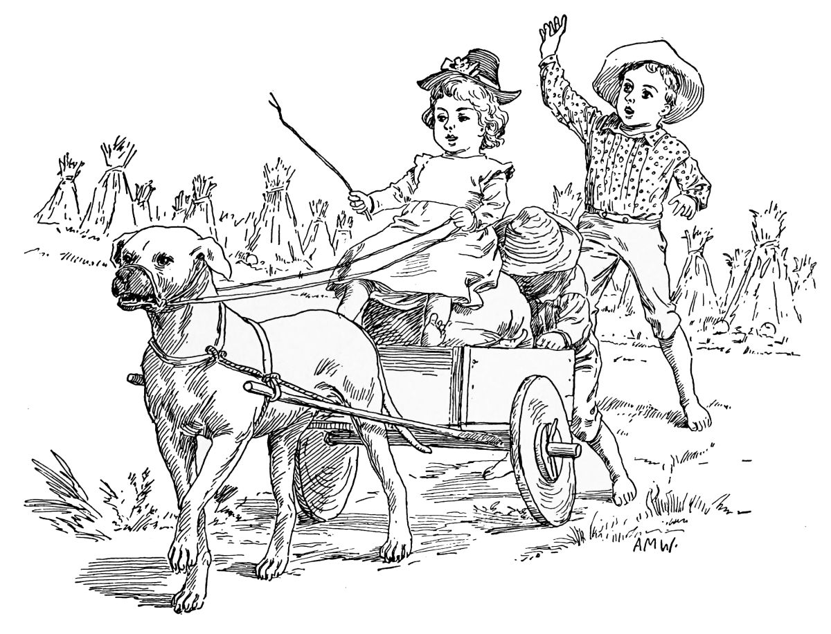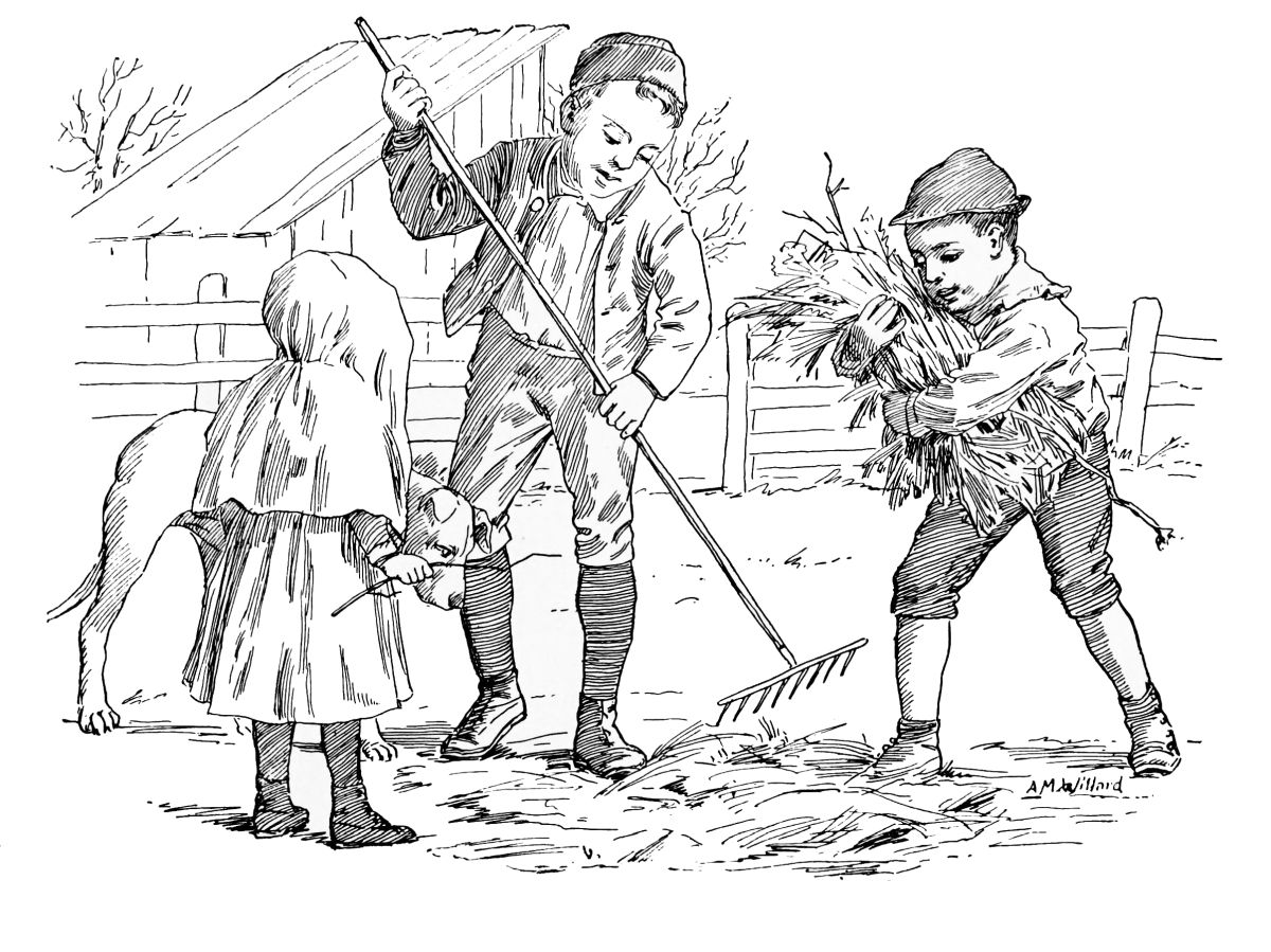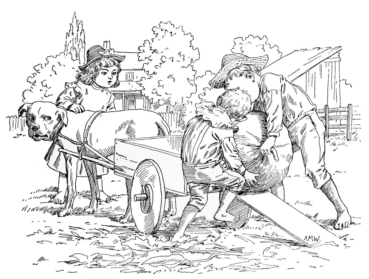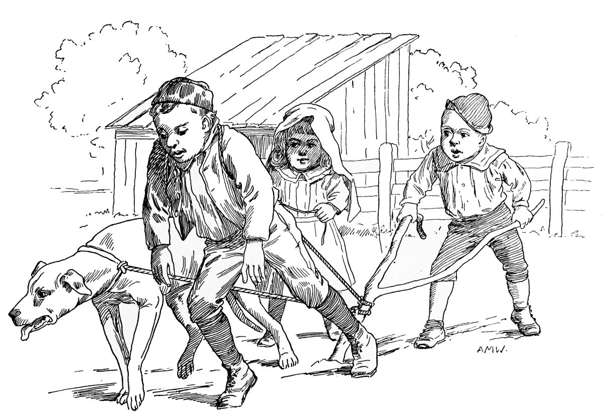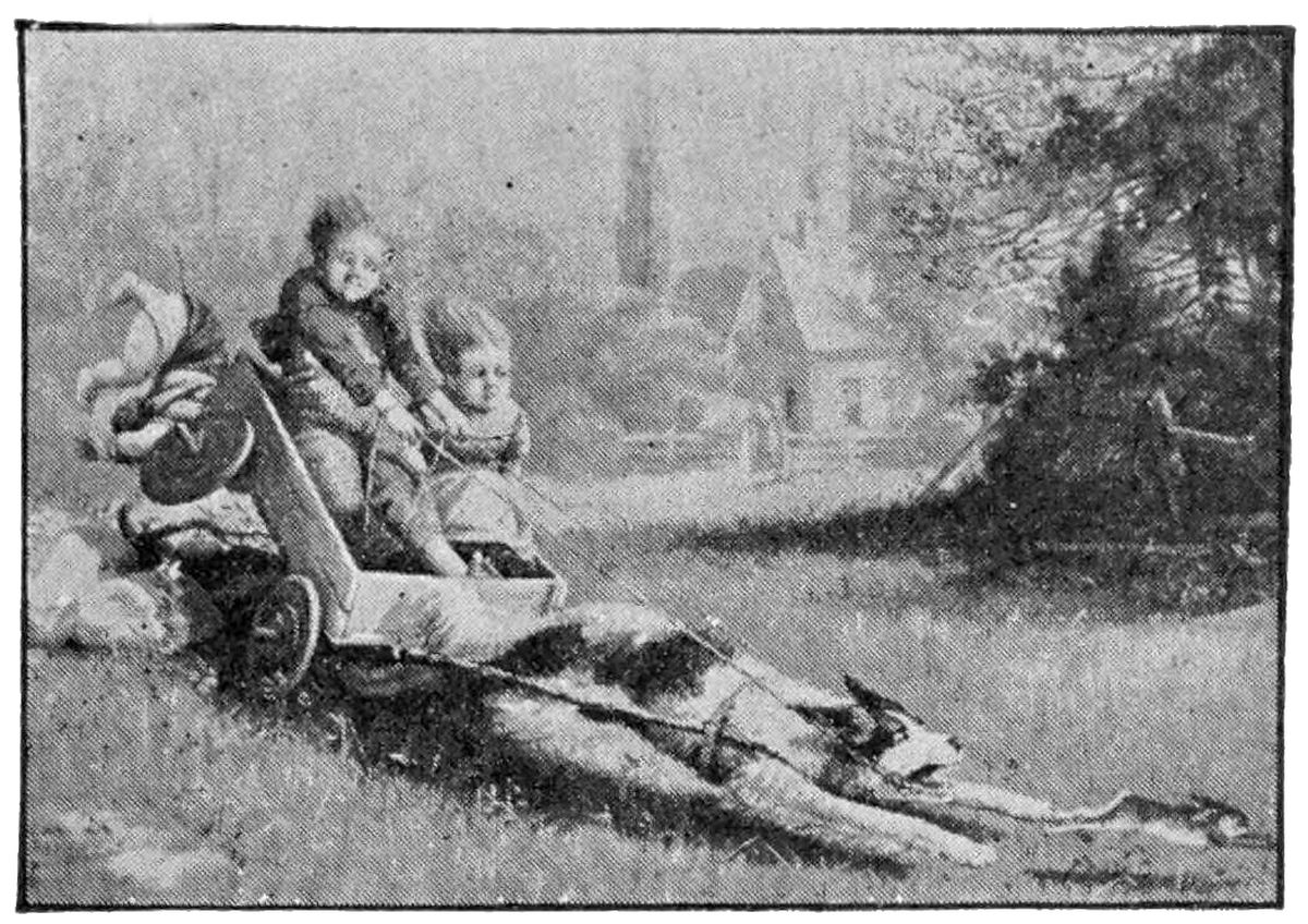 It is interesting to notice the recurrence of the theme in these pictures. There is still a dog, and the children must be a generation younger than those in “Pluck,” but they are the same sturdy, industrious, plucky little people.