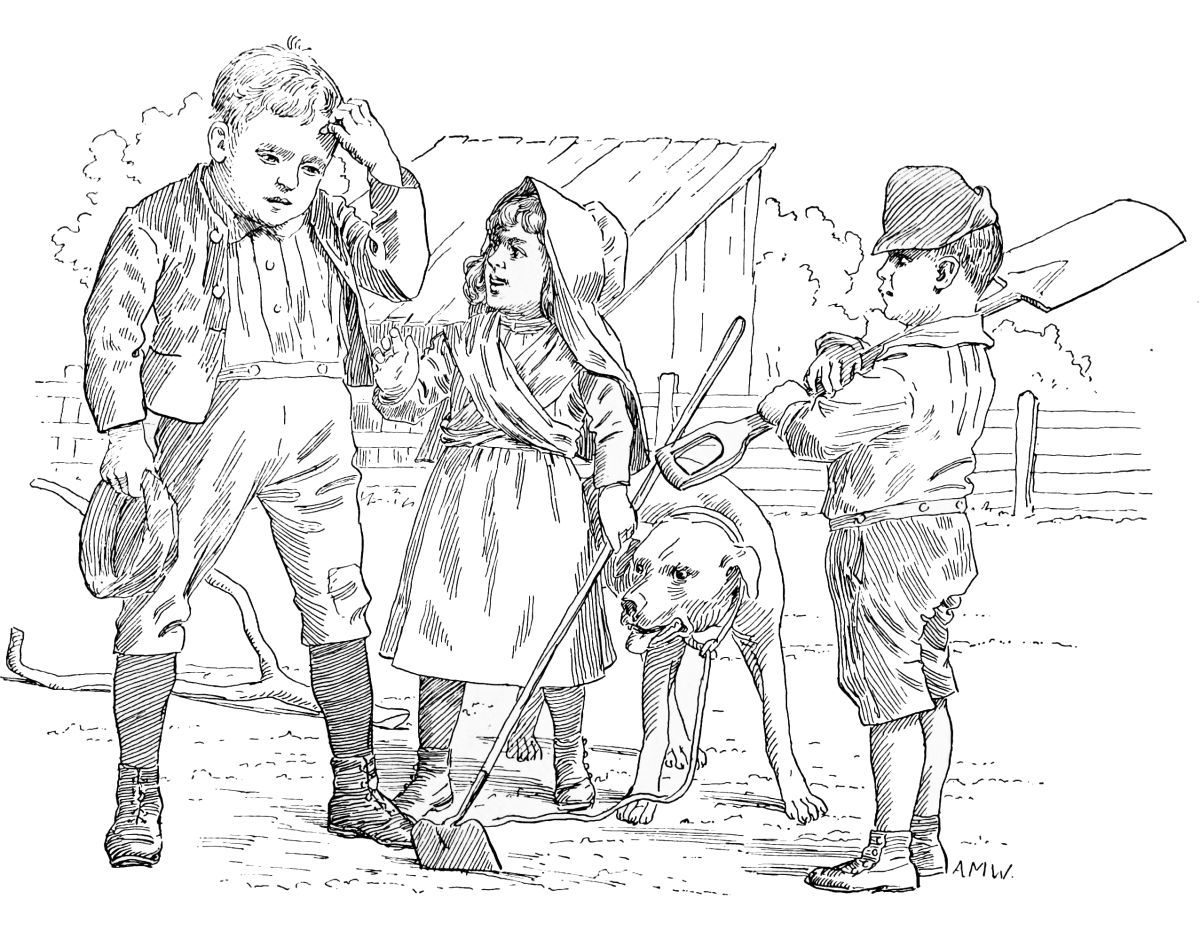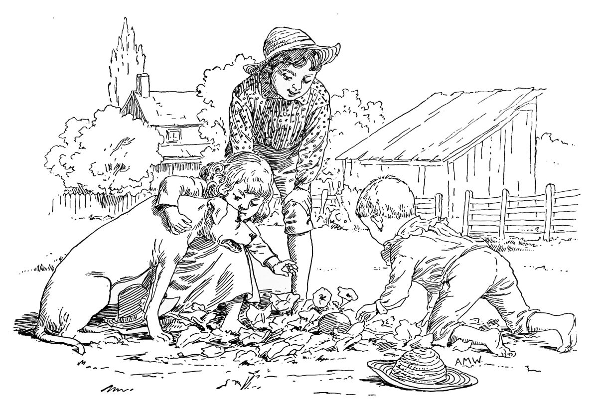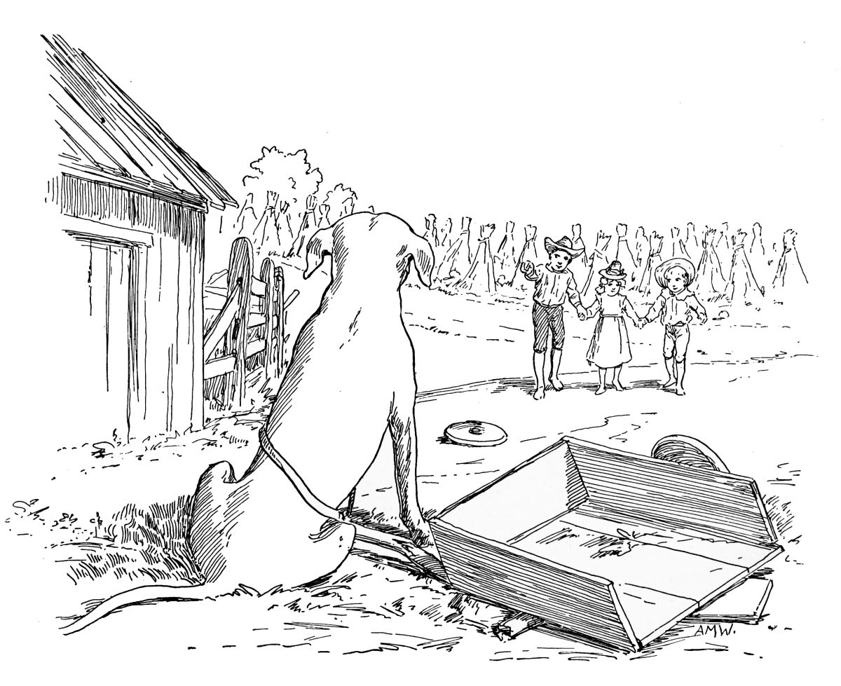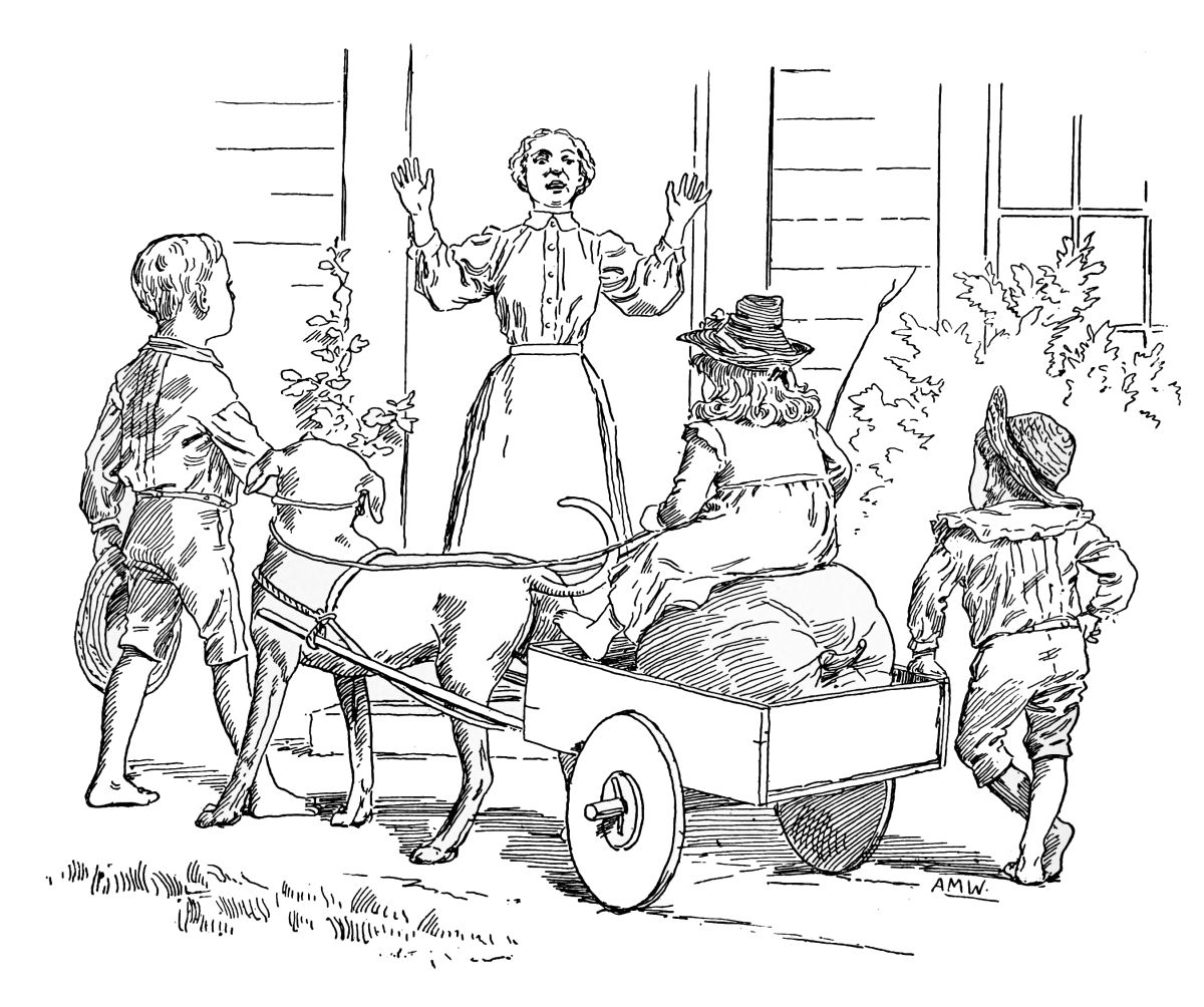 It is interesting to notice the recurrence of the theme in these pictures. There is still a dog, and the children must be a generation younger than those in “Pluck,” but they are the same sturdy, industrious, plucky little people.