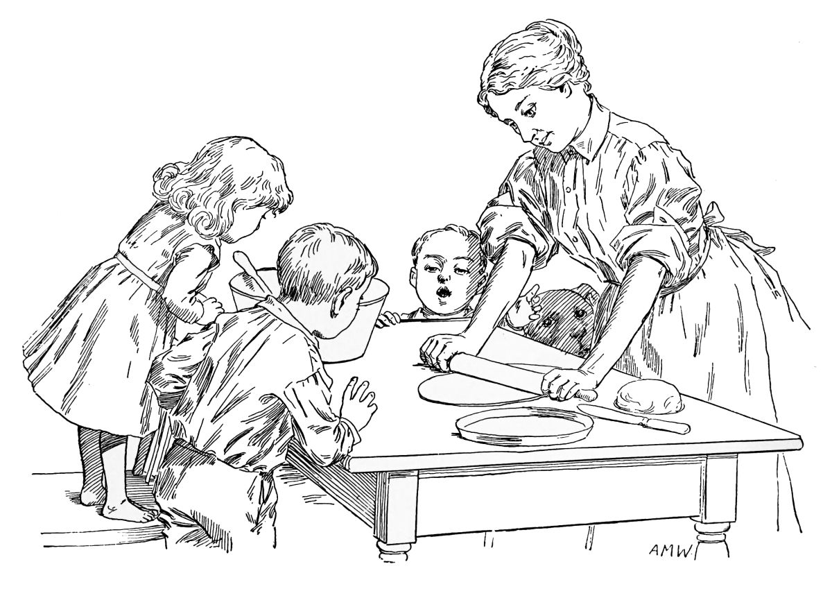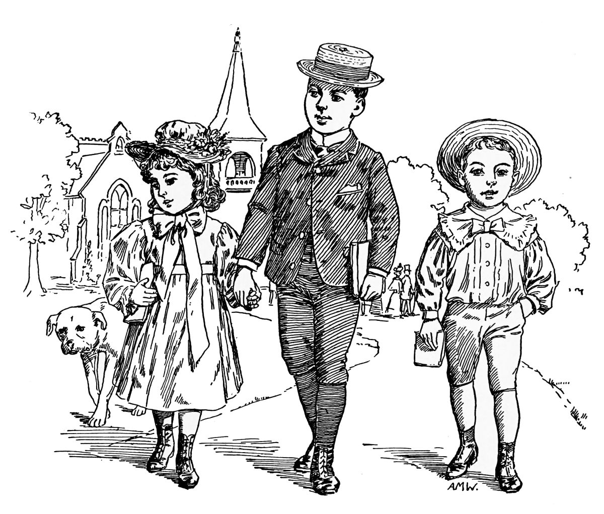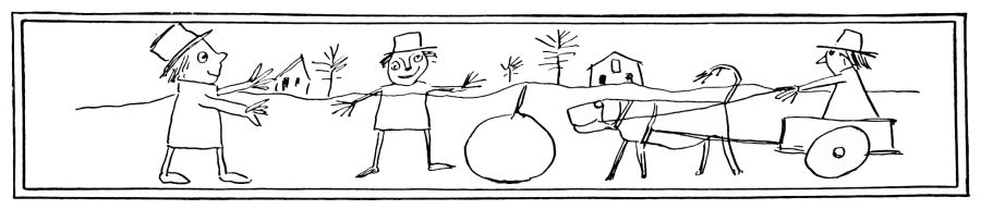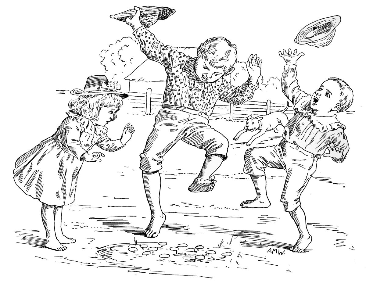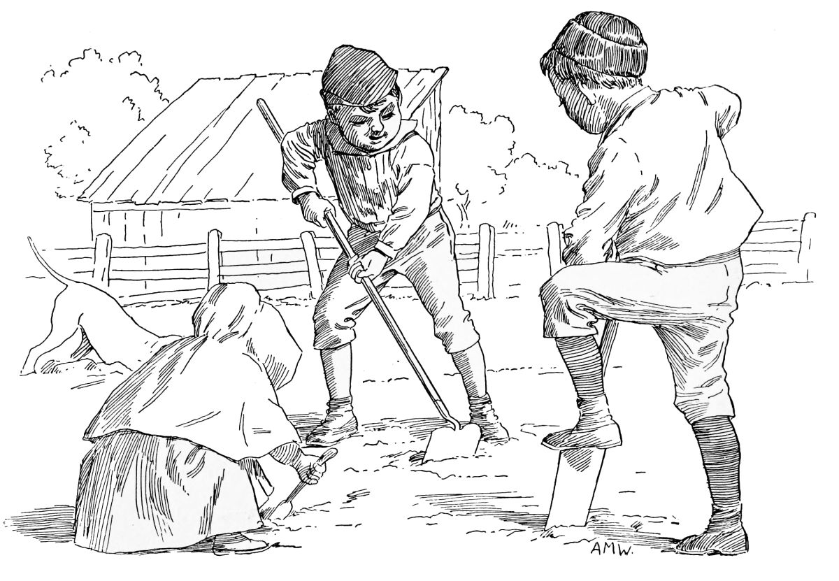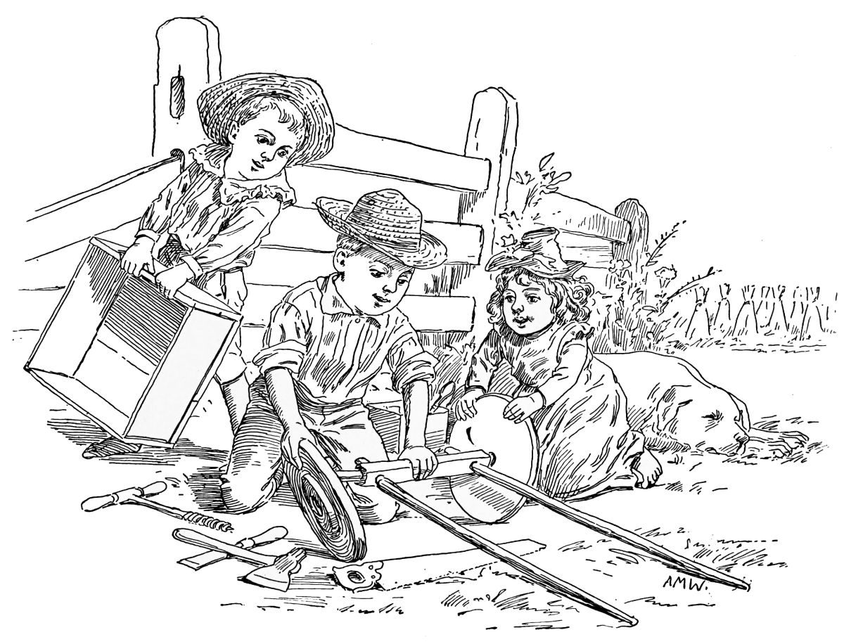 It is interesting to notice the recurrence of the theme in these pictures. There is still a dog, and the children must be a generation younger than those in “Pluck,” but they are the same sturdy, industrious, plucky little people.