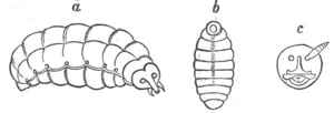 The Larva.—The temperature of the perforated tube wherein the egg is deposited must necessarily be higher and more equal than that of the external atmosphere, being secluded from its vicissitudes. The egg is soon hatched, and the larva emerges from its shell to feed ravenously upon the sustenance stored up for its supply. This consists of an admixture of pollen and honey formed into a paste, the quantities varying according to the size of the species. By some species it is formed into little balls; by others, it is heaped irregularly at the bottom of the cell. In the case of Andrena the quantity stored is of about the size of a pea. That it must be exceeding nutritious may be inferred from its very nature, consisting, as it does, of the virile, energetic, and fertilizing powder of plants,—the concentration of their living principle. It is strictly analogous to the 20fecundating property of the semen in animals, and, like them, produces spermatozoa, a fact corroborated by the researches of Robert Brown, Mirbel, and other distinguished vegetable physiologists.[1]