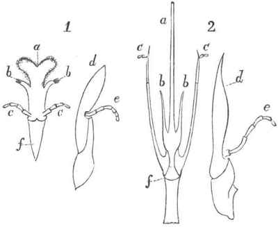 they work their way around, lapping the nectar as 14they go. To facilitate this fecundation of plants, which is Nature’s prime object, bees are usually more or less hairy; so that if even they limit themselves to imbibing nectar, they involuntarily fulfil the greater design by conveying the pollen from flower to flower. To many insects, especially flies, some flowers are a fatal attraction, for their viscous secretions often make these insects prisoners, and thus destroy them. To the bees this rarely or never happens, either by reason of their superior strength, or possibly from the instinct which repels them from visiting flowers which exude so clammy a substance. It is probably only to the end of promoting fertilization by the attraction of insects that the structure of those flowers which secrete nectar is exclusively conducive, and which fully and satisfactorily explains the final cause of this organization.