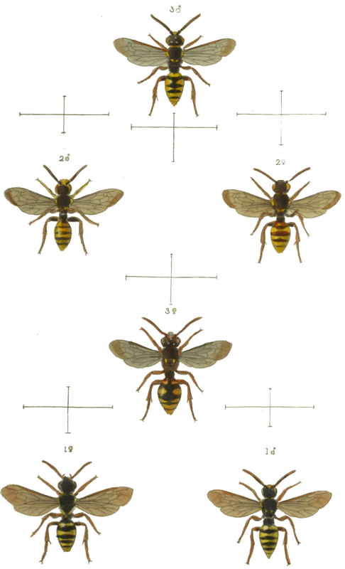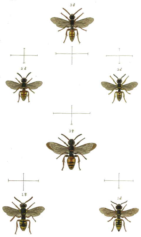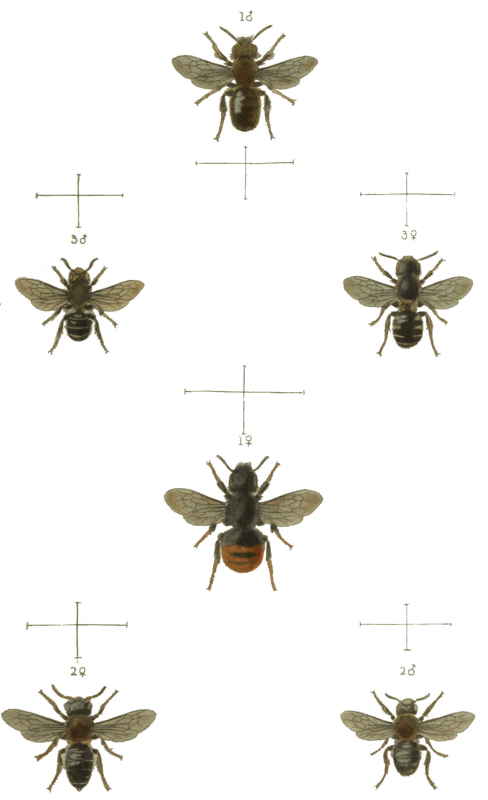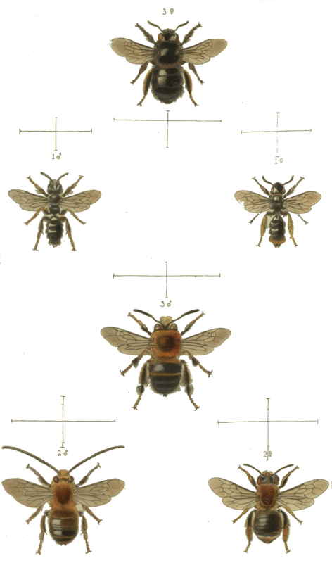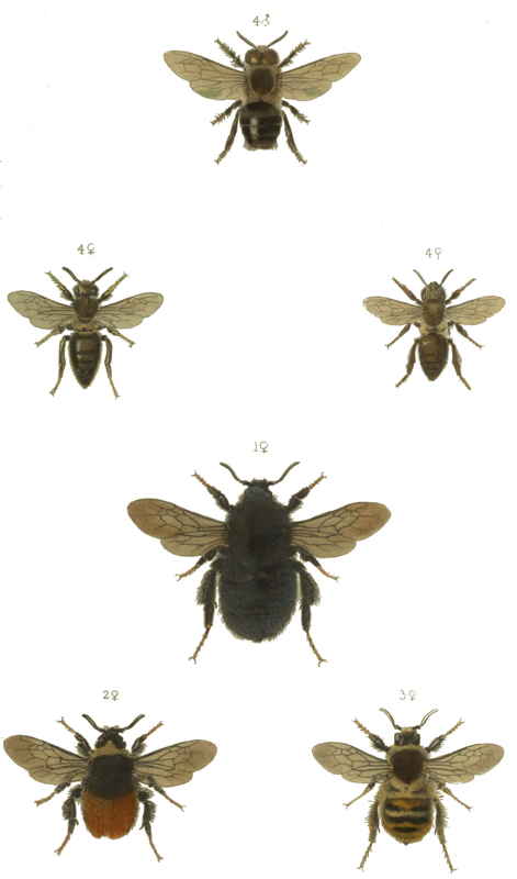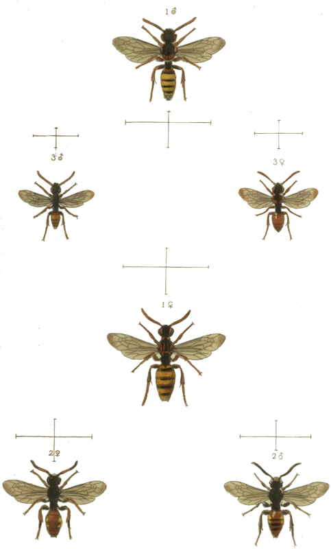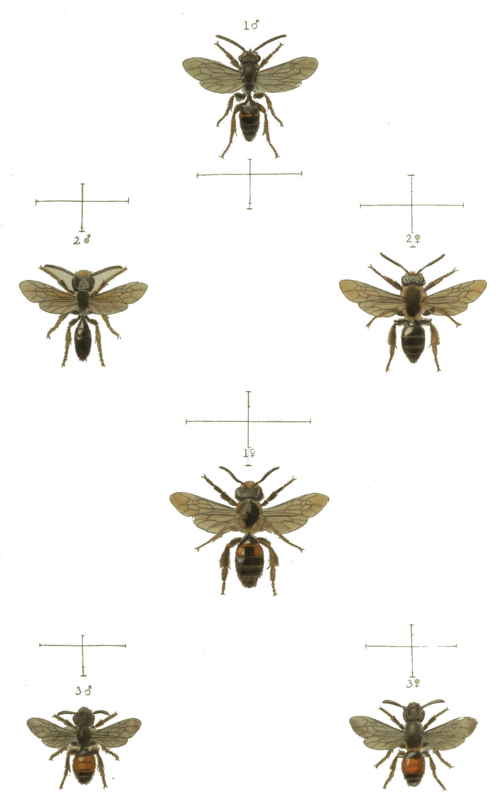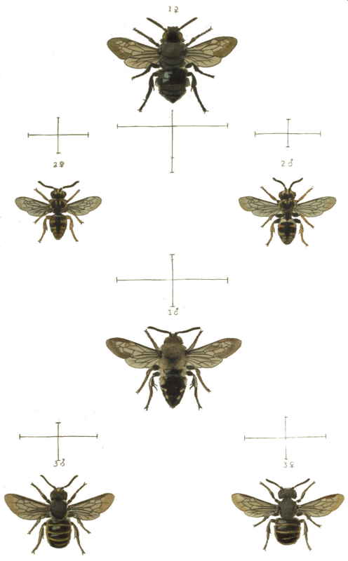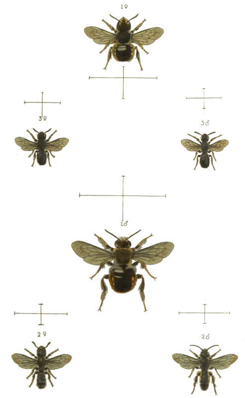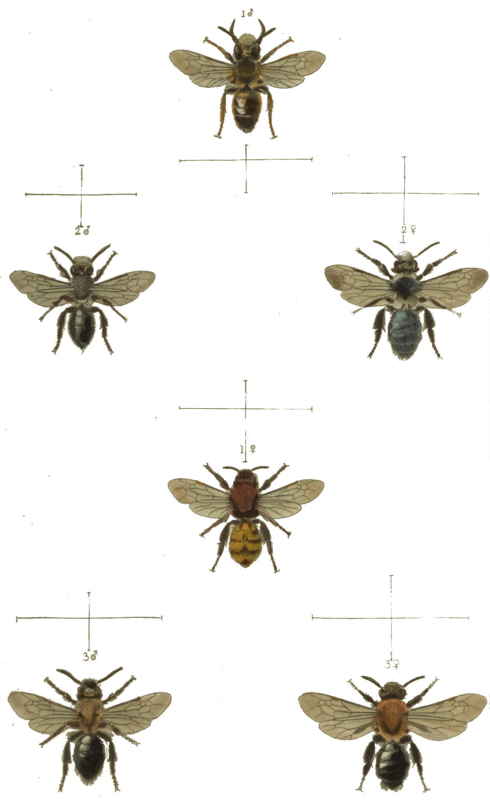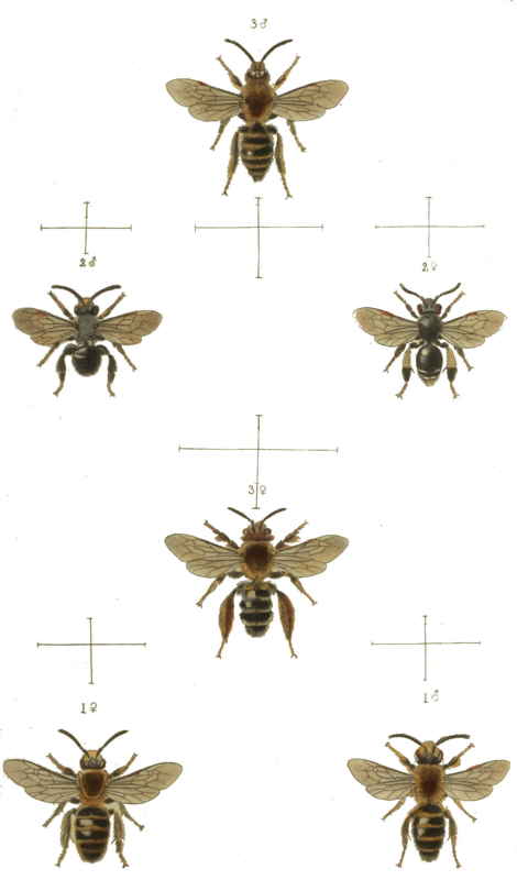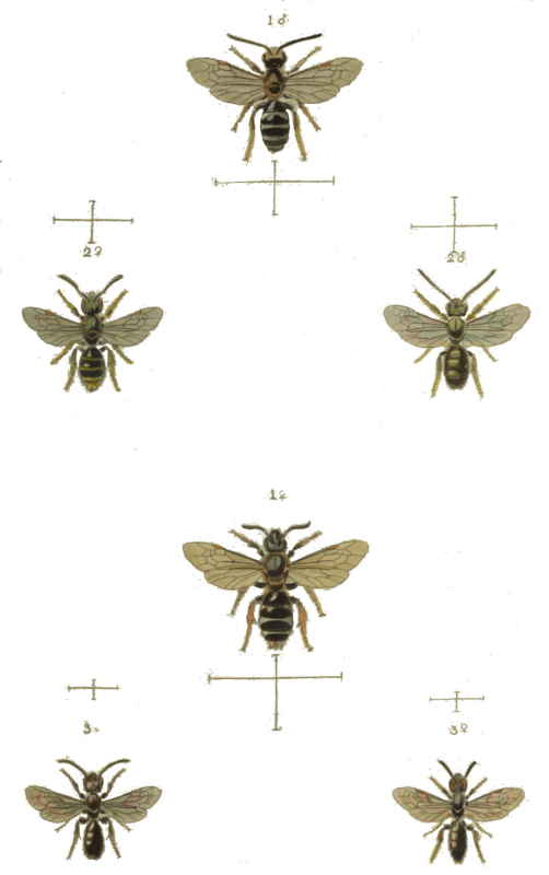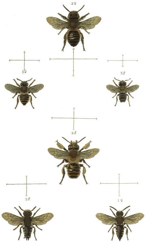 It is highly improbable that ordinary language will ever find distinctive names to indicate genera, and far less species: and although we have some few words which combine large groups, such as “gnats,” “flesh-flies,” “gad-flies,” “gall-flies,” “dragon-flies,” “sand wasps,” “humble-bees,” etc. etc.; and, although the small group, it is my purpose in the following pages to show in all their attractive peculiarities, has had several vernacular denominations applied to them to indicate their most distinctive characteristics, such as “cuckoo-bees,” “carpenter bees,” “mason bees,” “carding bees,” 10etc., yet many which are not thus to be distinguished, will have to wait long for their special appellation.