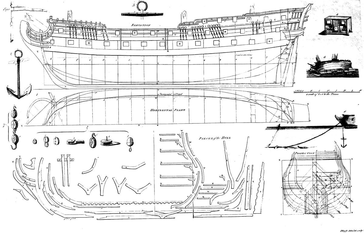 As the plates of this publication were intended to illustrate the various objects to which they refer, they are little ornamented; but have in general the recommendation of simplicity and geometrical truth. In this part I have been particularly favoured with many original drawings, which are usually considered amongst the inaccessible arcana of ship-building. They are much more numerous, useful, and correct, than what has hitherto appeared in any work of the kind. In fine, I have endeavoured, to the best of my judgment, to retrench the superfluities, and supply the deficiences of former writers on the same subject, as well as to digest and methodise whatever appeared loose or inaccurate therein.