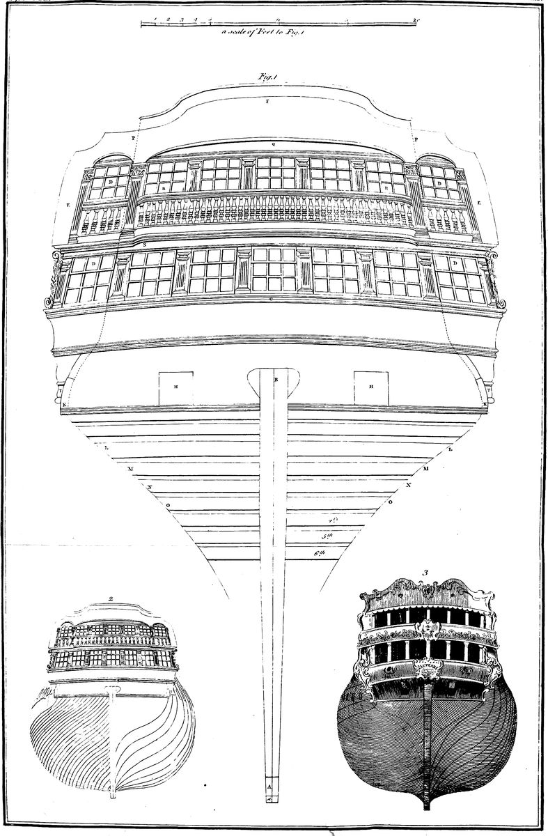 52. The reader, who wishes to be expert in this manœuvre, will find it copiously described by several ingenious French writers, particularly L’Hôte, Saverien, Morogues, Bourdé, and Ozane; who have given accurate instructions, deduced from experience, for putting it in practice when occasion requires. As it is not properly a term of the British marine, a more circumstantial account of it might be considered foreign to our plan. It has been observed in another part of this work[53], that the French have generally exhibited greater proofs of taste and judgment in the sculpture, with which their ships are decorated, than the English; the same candour and impartiality obliges us to confess their superior dexterity in this movement.