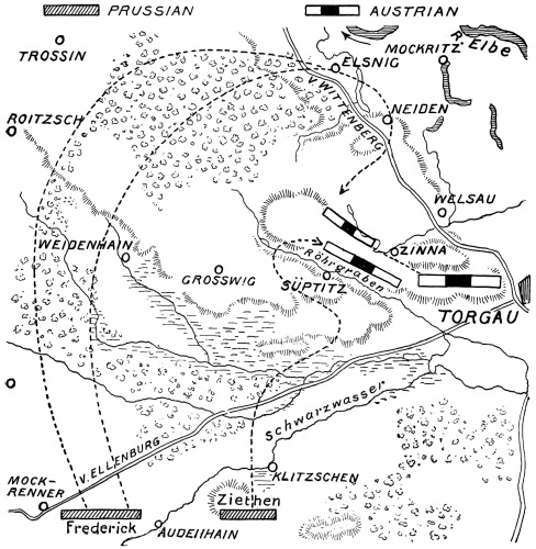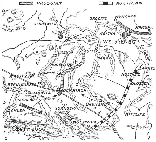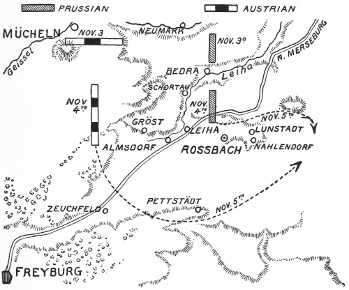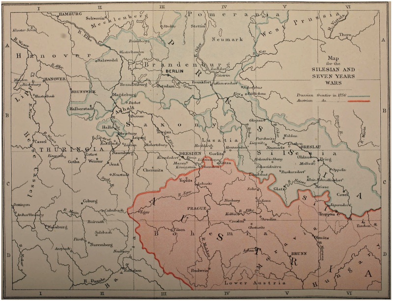 At critical points in the record of the years 1712vi to 1786 I was influenced successively by the Mémoires de la Margravine de Baireuth, the trenchant Frédéric II et Marie-Thérèse of the Duc de Broglie, the Politische Staatsschriften, Schäfer’s Der Siebenjährige Krieg, von Arneth’s Oesterreichische Geschichte, and Sorel’s The Eastern Question in the Eighteenth Century. Many of the battles in Saxony, Brandenburg, Bohemia, and Silesia form the subject of monographs which it was interesting to study on the field, sometimes with the aid of collections of maps and plans preserved in the neighbourhood.
