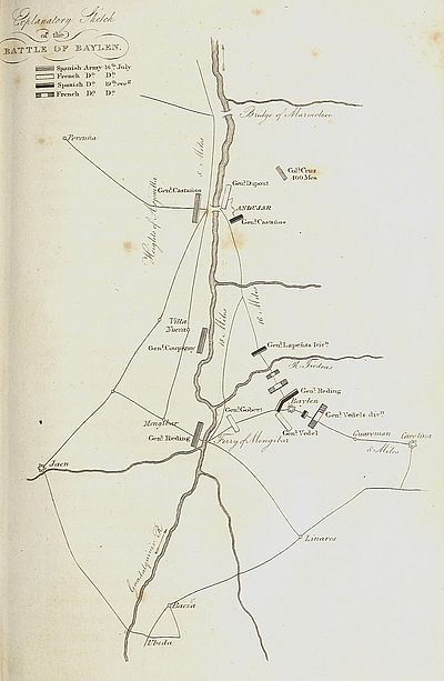 | Dupont marches against Andalusia, forces the bridge of Alcolea, takes Cordoba—Alarm at Seville—Castaños arrives, forms a new army—Dupont retreats to Andujar, attacks the town of Jaen—Vedel forces the pass of Despeñas Perros, arrives at Baylen—Spanish army arrives on the Guadalquivir—General Gobert defeated and killed—Generals Vedel and Darfour retire to Carolina—General Reding takes possession of Baylen—Dupont retires from Andujar—Battle of Baylen—Dupont’s capitulation, eighteen thousand French troops lay down their arms—Observations—Joseph holds a council of war, resolves to abandon Madrid—Impolicy of so doing | 112 | |