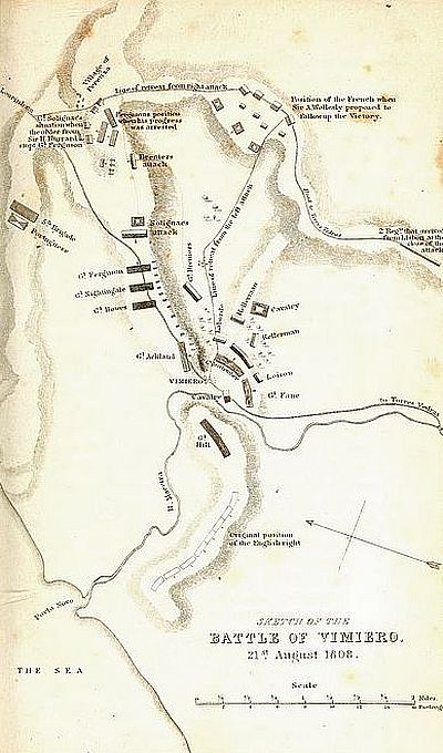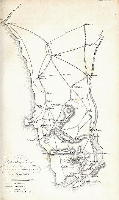| Sir A. Wellesley quits his troops and proceeds to Coruña—Junta refuse assistance in men, but ask for and obtain money—Sir Arthur goes to Oporto; arranges a plan with the bishop; proceeds to the Tagus; rejoins his troops; joined by Spencer; disembarks at the Mondego; has an interview with general Freire d’Andrada; marches to Leria—Portuguese insurrection weak—Junot’s position and dispositions—Laborde marches to Alcobaça, Loison to Abrantes—General Freire separates from the British—Junot quits Lisbon with the reserve—Laborde takes post at Roriça—Action of Roriça—Laborde retreats to Montachique—Sir A. Wellesley marches to Vimiero—Junot concentrates his army at Torres Vedras | 187 | |
