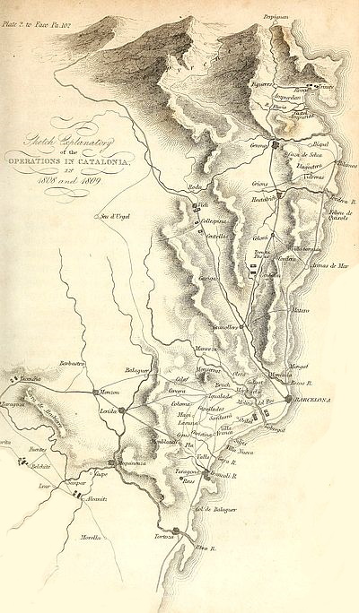| Tumult in Tarragona—Reding proclaimed general—Reinforcements join the Spaniards—Actions at Bruch—Lazan advances, and fights at Castel Ampurias—He quarrels with Reding, and marches towards Zaragoza—Reding’s plans—St. Cyr breaks Reding’s line at Llacuna—Actions at Capelades, Igualada, and St. Magi—French general, unable to take the abbey of Creuz, turns it, and reaches Villaradona—Joined by Souham’s division, takes post at Valls and Pla—Reding rallies his centre and left wing—Endeavours to reach Taragona—Battle of Valls—Weak condition of Tortosa—St. Cyr blockades Taragona—Sickness in that city—St. Cyr resolves to retire—Chabran forces the bridge of Molino del Rey—Conspiracy in Barcelona fails—Colonel Briche arrives with a detachment from Aragon—St. Cyr retires behind the Llobregat—Pino defeats Wimpfen at Tarrasa—Reding dies—His character—Blake is appointed captain-general of the Coronilla—Changes the line of operations to Aragon—Events in that province—Suchet takes the command of the French at Zaragoza—Colonels Pereña and Baget oblige eight French companies to surrender—Blake advances—Battle of Alcanitz—Suchet falls back—Disorder in his army—Blake neglects Catalonia—St. Cyr marches by the valley of Congosto upon Vich—Action at the defile of Garriga—Lecchi conducts the prisoners to the Fluvia—St. Cyr hears of the Austrian war—Barcelona victualled by a French squadron—Observations | 78 |