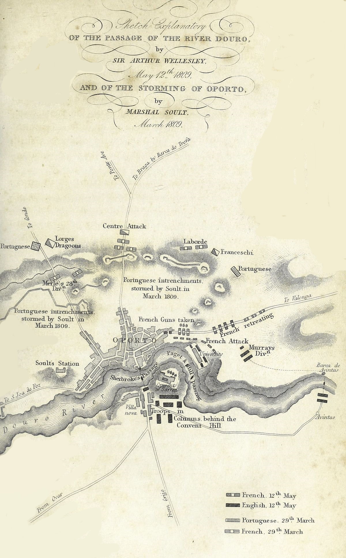 | The bishop of Oporto flies to Lisbon, and joins the regency—Humanity of marshal Soult—The Anti-Braganza party revives in the north of Portugal—The leaders make proposals to Soult—He encourages them—Error arising out of this proceeding—Effects of Soult’s policy—Assassination of colonel Lameth—Execution at Arifana—Distribution of the French troops—Franceschi opposed, on the Vouga, by colonel Trant—Loison falls back behind the Souza—Heudelet marches to the relief of Tuy—The Spaniards, aided by some English frigates, oblige thirteen hundred French to capitulate at Vigo—Heudelet returns to Braga—The insurrection in the Entre Minho e Douro ceases—Sylveira menaces Oporto—Laborde reinforces Loison, and drives Sylveira over the Tamega—Gallant conduct and death of colonel Patrick at Amarante—Combats at Amarante—French repulsed—Ingenious device of captain Brochard—The bridge of Amarante carried by storm—Loison advances to the Douro—Is suddenly checked—Observations | 231 |