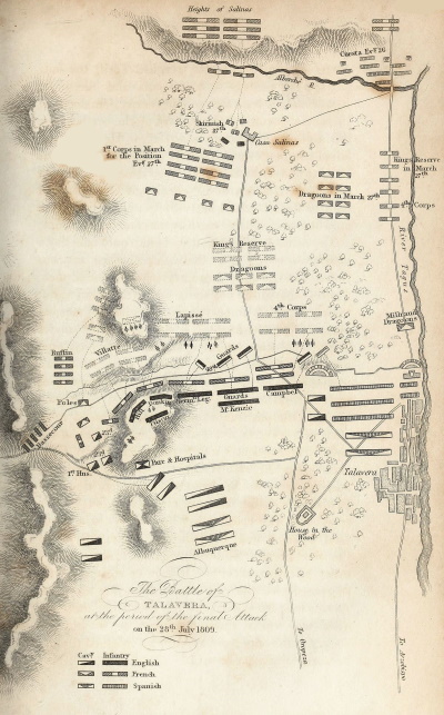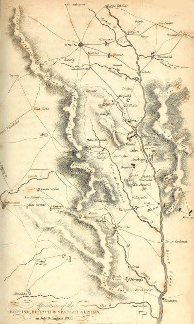 | Cuesta passes the Alberche—Sir Arthur Wellesley sends two English divisions to support him—Soult is appointed to command the second, fifth, and sixth corps—He proposes to besiege Ciudad Rodrigo and threaten Lisbon—He enters Salamanca, and sends general Foy to Madrid to concert the plan of operations—The king quits Madrid—Unites his whole army—Crosses the Guadarama river, and attacks Cuesta—Combat of Alcabon—Spaniards fall back in confusion to the Alberche—Cuesta refuses to pass that river—His dangerous position—The French advance—Cuesta re-crosses the Tietar—Sir Arthur Wellesley draws up the combined forces on the position of Talavera—The king crosses the Tietar—Skirmish at Casa de Salinas—Combat on the evening of the 27th—Panic in the Spanish army—Combat on the morning of the 28th—The king holds a council of war—Jourdan and Victor propose different plans—The king follows that of Victor—Battle of Talavera—The French re-cross the Alberche—General Craufurd arrives in the English camp—His extraordinary march—Observations | 377 |