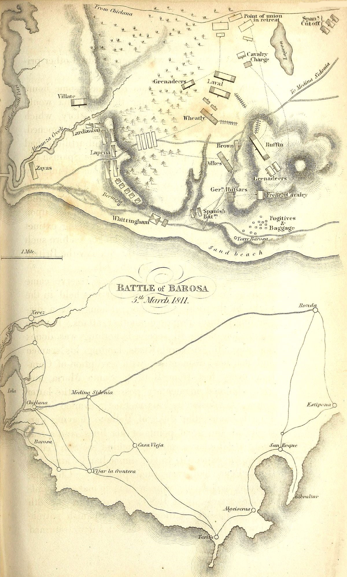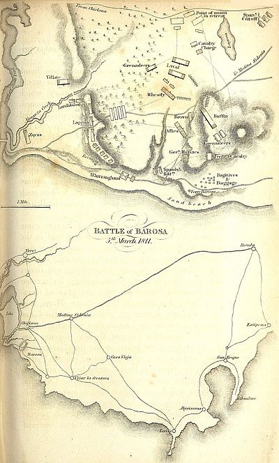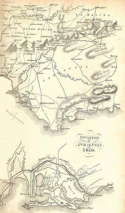 | Soult assumes the direction of the blockade of Cadiz—His flotilla—Enters the Troccadero canal—Villantroys, or cannon-mortars, employed by the French—Inactivity of the Spaniards—Napoleon directs Soult to aid Massena—Has some notion of evacuating Andalusia—Soultâs first expedition to Estremadura—Carries the bridge of Merida—Besieges Olivenza—Ballasteros defeated at Castellejos—Flies into Portugal—Romanaâs divisions march from Cartaxo to the succour of Olivenza—That place surrenders—Romana dies—His character—Lord Wellingtonâs counsels neglected by the Spanish generals—First siege of Badajos—Mendizabel arrives—Files the Spanish army into Badajos—Makes a grand sally—Is driven back with loss—Pitches his camp round San Christoval—Battle of the Gebora—Continuation of the blockade of Cadiz—Expedition of the allies under general Lapeña—Battle of Barosa—Factions in Cadiz | 421 |