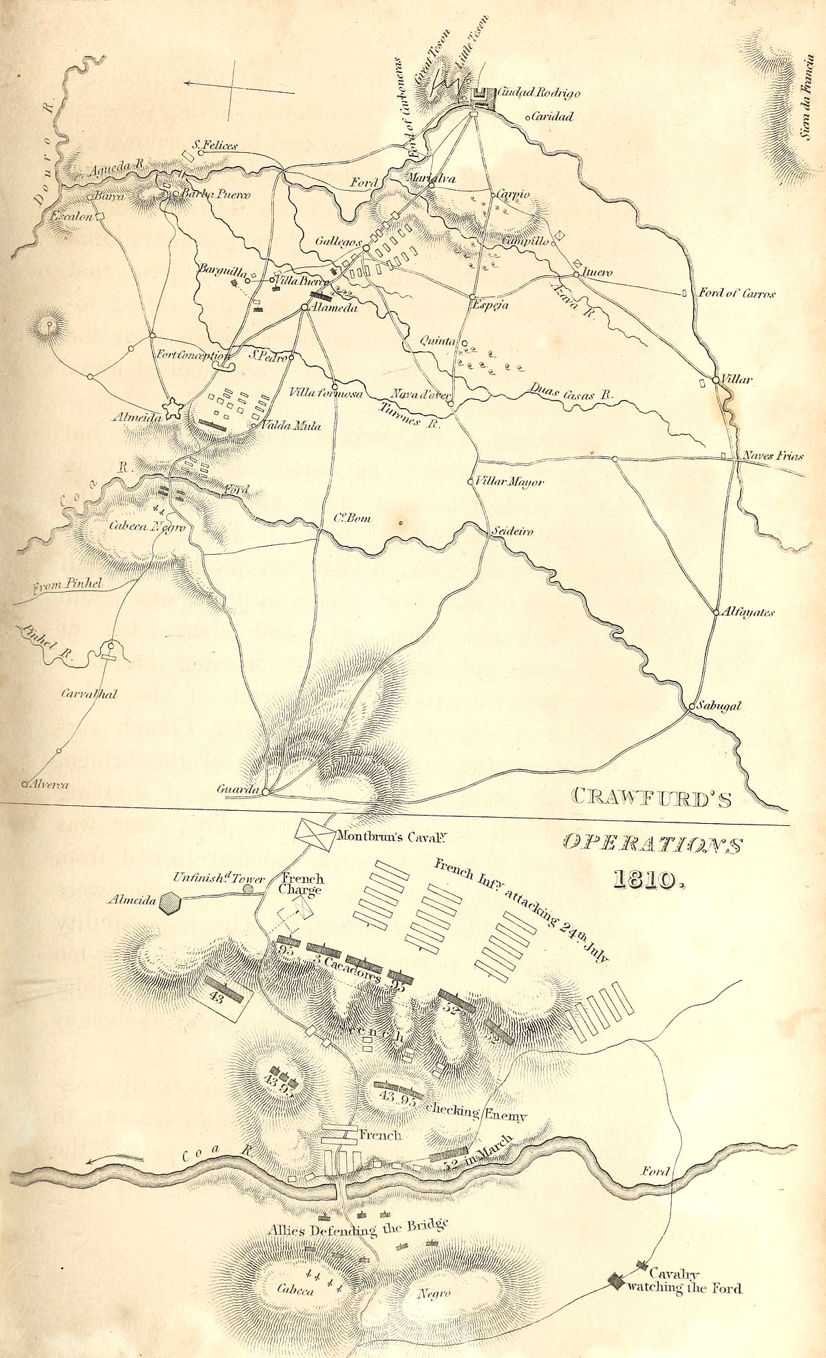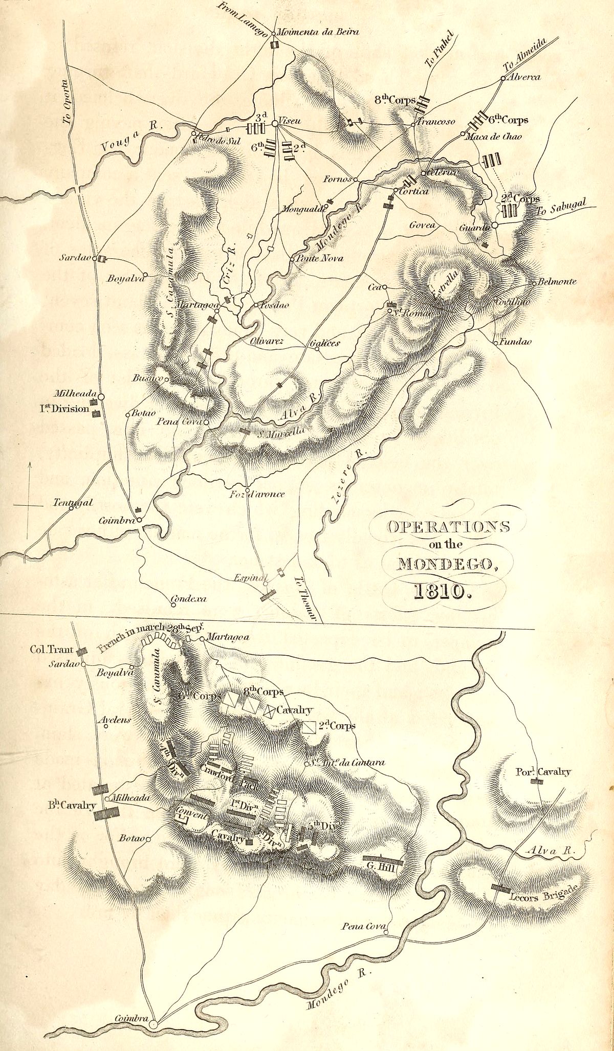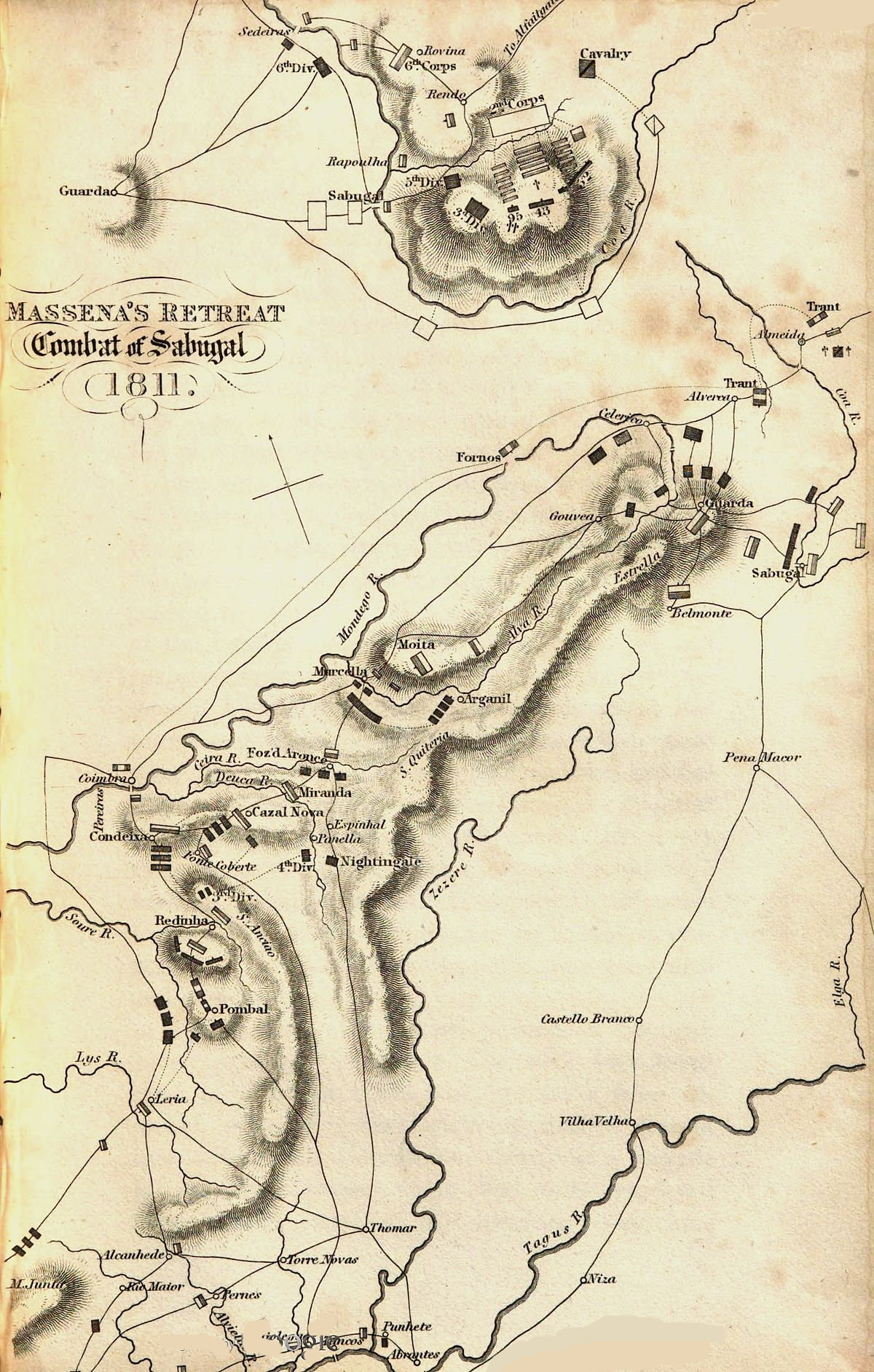 | Allies halt for provisions—State of the campaign—Passage of the Ceira—Passage of the Alva—Massena retires to Celerico—Resolves to march upon Coria—Is prevented by Ney, who is deprived of his command and sent to France—Massena abandons Celerico and takes post at Guarda—The allies oblige the French to quit that position, and Massena takes a new one behind the Coa—Combat of Sabugal—Trant crosses the Coa and cuts the communication between Almeida and Ciudad Rodrigo—His danger—He is released by the British cavalry and artillery—Massena abandons Portugal | 473 |