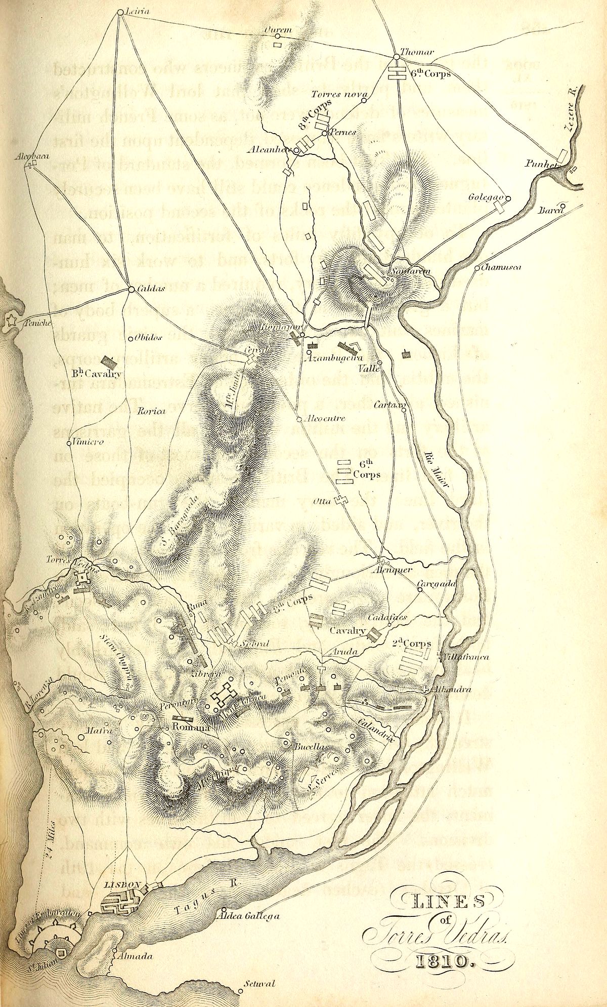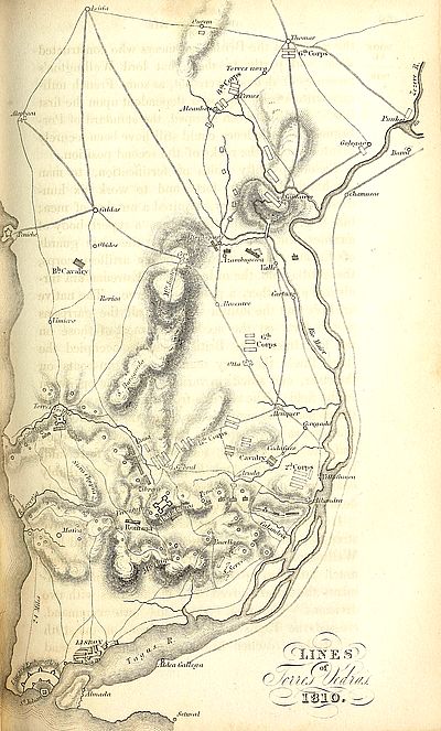 | Massena resumes his march—The militia close upon his rear—Cavalry skirmish near Leiria—Allies retreat upon the lines—Colonel Trant surprises Coimbra—The French army continues its march—Cavalry skirmish at Rio Mayor—General Crawfurd is surprised at Alemquer and retreats by the wrong road—Dangerous results of this error—Description of the lines of Torres Vedras—Massena arrives in front of them—Romana reinforces Lord Wellington with two Spanish divisions—Remarkable works executed by the light division at Aruda—The French skirmish at Sobral—General Harvey wounded—General St. Croix killed—Massena takes a permanent position in front of the Lines—He is harassed on the rear and flanks by the British cavalry and the Portuguese militia | 340 |