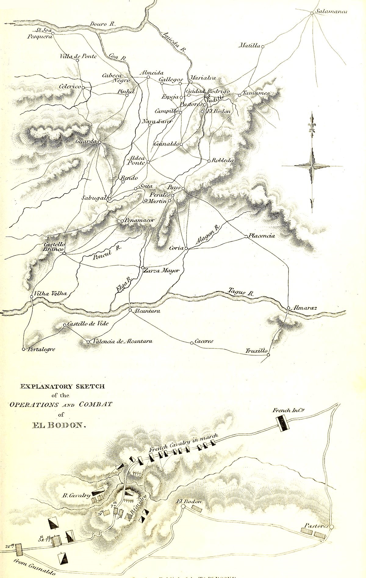 | The garrison of Ciudad Rodrigo make some successful excursions—Morillo operates against the French in Estremadura, is defeated and driven to Albuquerque—Civil affairs of Portugal—Bad conduct of the regency—They imagine [vii] the war to be decided, and endeavour to drive lord Wellington away from Portugal—Indications that Napoleon would assume the command in the Peninsula observed by lord Wellington—He expects a combined attack on Lisbon by sea and land—Marmont and Dorsenne collect convoys and unite at Tamames—Advance to succour Ciudad Rodrigo—Combat of Elbodon—Allies retire to Guinaldo—To Aldea Ponte—Combat of Aldea Ponte—The allies retire to Soita—The French retire—Observations | 229 |