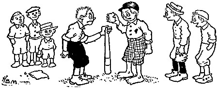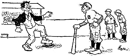 | Baseball, they say, has changed a heap; I guess it has, in spots, And yet I liked it better when we played it on the lots. There were no signs for “hit and run,” no dazzling “fadeaways”; We had no high-priced managers to tell us fancy plays. No, we were just a lot of kids, with tanned and freckled hides; There were no concrete grand stands when we played at “choosing sides.” I saw a ball game yesterday, and o’er a brass band’s blare The cheers of thirty thousand fans were soaring through the air. [Pg 44]The turnstiles had been clicking for three solid golden hours, Recording wealth and profit for the big league baseball powers. How soon we lose our play days! How swiftly childhood glides! There were no clicking turnstiles when we played at “choosing sides.” The captains used to toss a bat, and then, hand over hand— But why repeat a story every boy must understand? Then came the careful picking—“I’ll take Reddy.” “Give me Flynn.” “I’ll choose you, Skinny Murphy.” “I’ll take you, Pat McGinn.” They picked the live ones first, of course, and finished with the snides; Feelings were often ruffled when we played at “choosing sides.” Dear reader, you’ll remember, if you peek into the past, The little four-eyed fellow that was always chosen last. The little weak-kneed urchin that the captain would ignore Until he found by counting, that he needed one man more. He couldn’t bat, he couldn’t field, and yet that shrimp to-day Is making laws in Congress, while his captain drives a dray. |