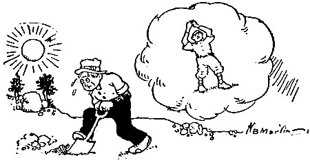 | Winter howled around the corners of the old-time grocery store, Where the baseball star was sitting, giving out his baseball lore. Every day he told the neighbors in his little Western town How he hit the curves of Matty and the shoots of Miner Brown. “No, I ain’t signed up this season,” he would tell the gaping throng, “And I won’t sign boys, believe me, till the check looks good and strong. John T. Brush knows where to find me, and he knows I’ll play the game When I get a good fat contract”—but the contract never came. “Maybe I’ll go South to Texas,” said a gawky young recruit, “If the contract that they send me names a salary that will suit. Why, they’re crazy for new talent; all the papers tell me so, [Pg 48]And your little Uncle Dudley isn’t out to skip the dough. I can play that third sack, fellows, just as well as Devlin can, And I won’t take half a paycheck, when I’m every inch a man. When I get my kind of contract, I’ll jump out and grab the fame, Not till then will I get busy”—but the contract never came. Life is but a game of baseball, with its players everywhere; Some are sulking in their wigwams, some are out to do and dare. Some are working, working, working, turning labor into fun; Others talk of future conquests, and depart with nothing done. Far beyond the clouds and sunlight dwells a magnate wondrous kind, With a million, million contracts always waiting to be signed. Yours, my friend, the task of trying; yours alone the bitter blame, If you tell, when life is ebbing, how the contract never came. |