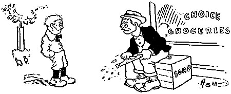 | The cricket game was over and the sun was sinking low, The players in their blazers plodded homeward in a row. They stopped within the clubhouse for a final cup of tea, When up spake Captain Edgerton to Bowler Basil Fee: “Jolly well tried, old chap! You lost as the greatest can; But whether you win or whether you lose You’re always a gentleman. Have a Scotch and soda, old fellow— It will drive off the blooming blues; Keep up your stride, you jolly well tried, And a man can’t always lose.” The baseball game was over and the home team had been skinned, [Pg 32]The players slunk across the field while sundry knockers grinned; They hurried to the clubhouse for a bath and change of garb, When up spake Manager McDuff, and each word was a barb: “Fine lot of high-priced athletes! Most of you ain’t alive! I could pick a team from the Soldiers’ Home And beat you four out of five. Be out here at ten to-morrow— That goes the way that it lays; Any mixed-ale sport that doesn’t report Will squat on the bench ten days!” |