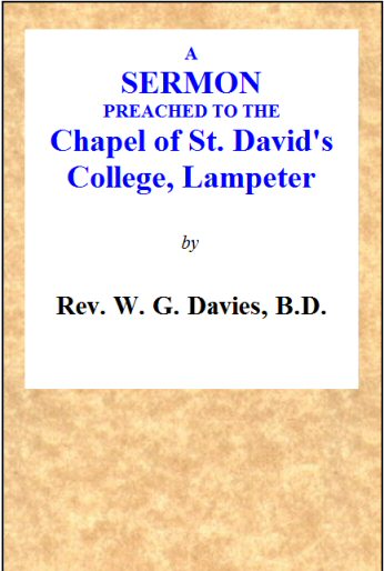 The discourses which I have the privilege of delivering in this chapel, are specially addressed to my younger brethren, the undergraduates. I cannot but dwell with pleasure upon the time when I was myself a student in this college. This, together with the fact that I am a native of the lower part of this county, and was brought up among some of the most primitive of the Welsh people, and consequently am familiar with their leading sentiments, manners, and customs, places me, I cannot help feeling, in a state of close sympathy with the greater number of you. Assuming the existence of this fellow feeling, I have chosen, on this occasion, to investigate the social and religious condition of my countrymen in a light which has not yet penetrated into the fastnesses of the popular mind of Wales. I have done this, because the subject is one that elicits ideas of high import, which it is desirable you should know, inasmuch as they ought to prove of signal service to you in your future ministrations.