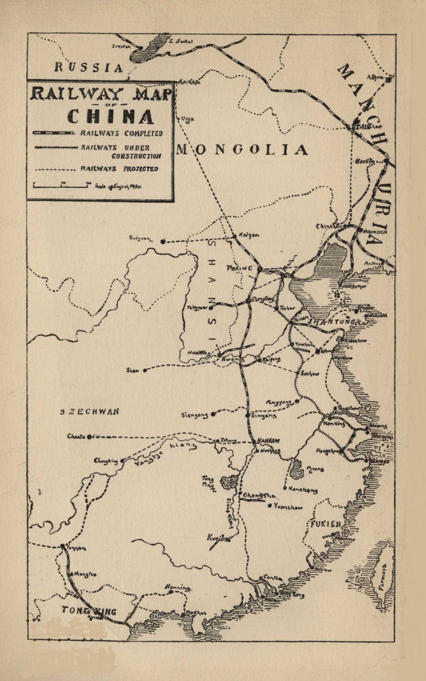 This scheme is being tried in Chentu, where a union University is being started. And I believe it is in every way proving successful. Those who have not realised the size of China will be perhaps inclined to ask why not unite the two schemes? The simple answer to those who have travelled is that the distances are too vast. You might as well talk of uniting Oxford and Harvard, for those two Universities are about as far from one another in time as Hankow is from Chentu. Even when the railway is built the distances will be immense. The enormous distances of China are also a reason why it was impossible to amalgamate the Hong-Kong scheme and the Oxford and Cambridge scheme. Hong-Kong is now ten days to a fortnight away from Hankow, and such a different language is spoken there that the dwellers in Northern and Central China are often forced to use English to understand one another.