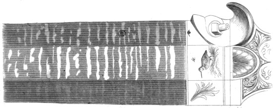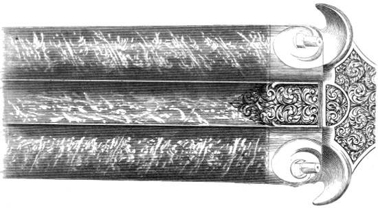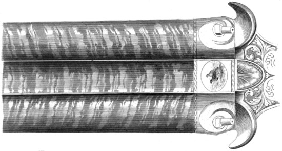 Although it was not until the latter part of the seventeenth, or the beginning of the eighteenth century, that gun manufactories were established in this kingdom, yet we have attained to a degree of perfection and excellence unequalled by any other nation in the world. Birmingham is the emporium of the world for guns, from the most inferior—the “park paling,” so called, of the slave-trade, with which ships might yet be freighted at the cost of eight shillings and sixpence each—up to the elaborately-finished gun of the peer. Most of the[14] alterations which have been made in gun-locks in England, have been with a view to simplify the machinery, and obtain the greatest quickness in firing: much complication has been discarded; a thorough conviction having seated itself in the minds of Englishmen, that to attain perfection, simplicity must be combined.