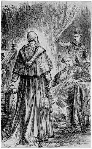 Notwithstanding his prostration, however, he was carried twice in each day to the chapel to hear mass. One evening after vespers, the large easy-chair in which he reclined was wheeled into the library, and Priuli, who now seldom left him, took his accustomed place by his side. Four days having elapsed since the Cardinal’s last attack, it was certain that the night would not pass without a return of the fever. Notwithstanding this, Pole was conversing cheerfully with his friend, when Rodomont Bittern entered to say that Mistress Constance Tyrrell was without, and desired to see his Eminence.