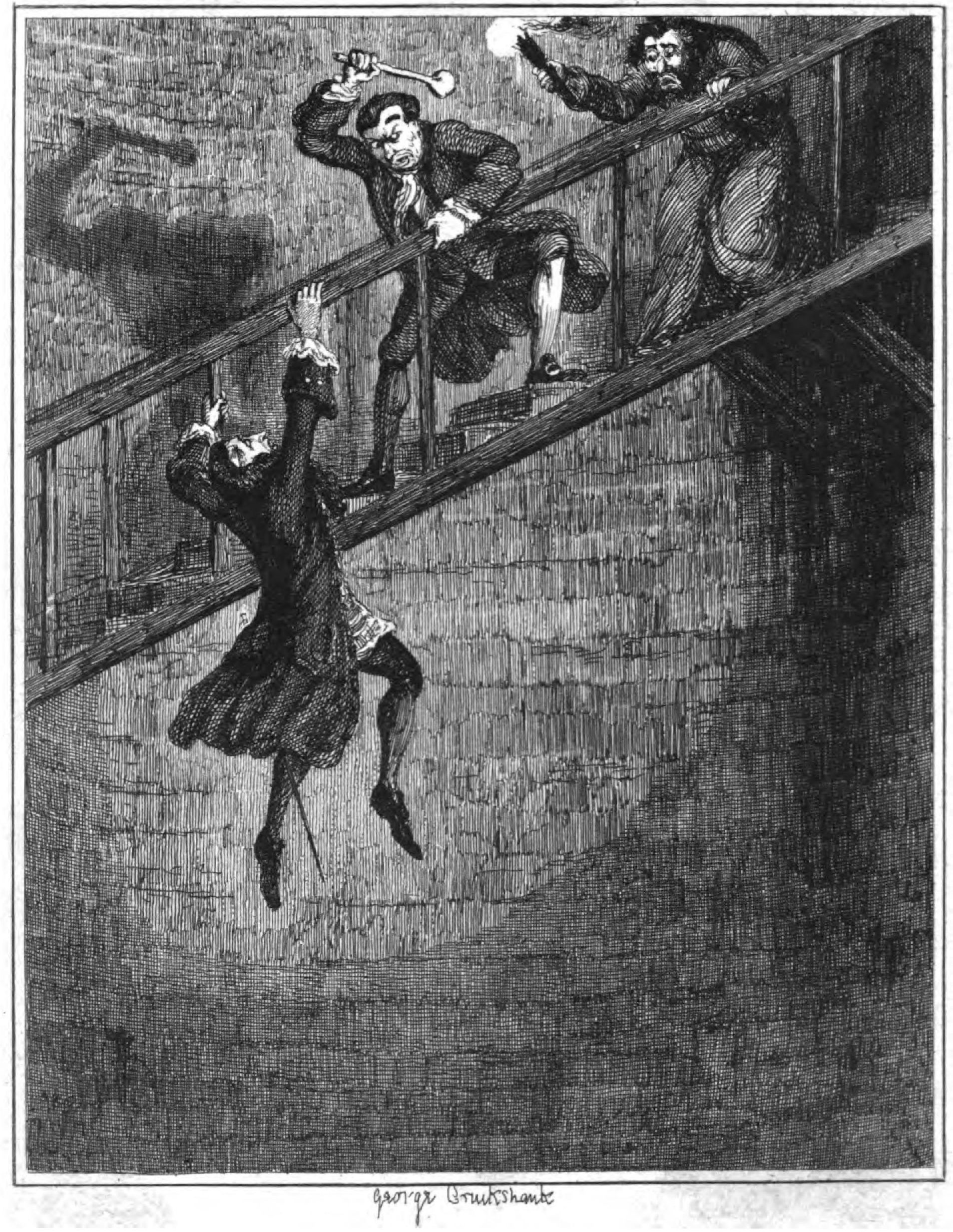 Jonathan Wild throwing Sir Rowland Trenchard down the Well