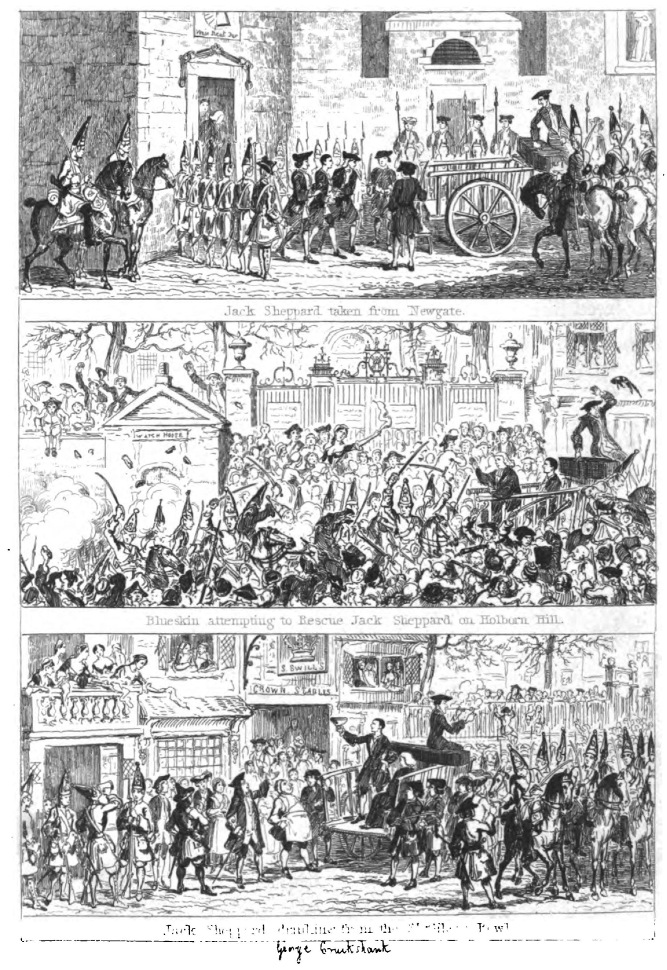 A deep silence, however, now prevailed, broken only by the tolling of the bells of Newgate and St. Sepulchre's. The mighty concourse became for a moment still. Suddenly, such a shout as has seldom smitten human ears rent the air. “He comes!” cried a thousand voices, and the shout ascended to Smithfield, descended to Snow Hill, and told those who were assembled on Holborn Hill that Sheppard had left the prison.
