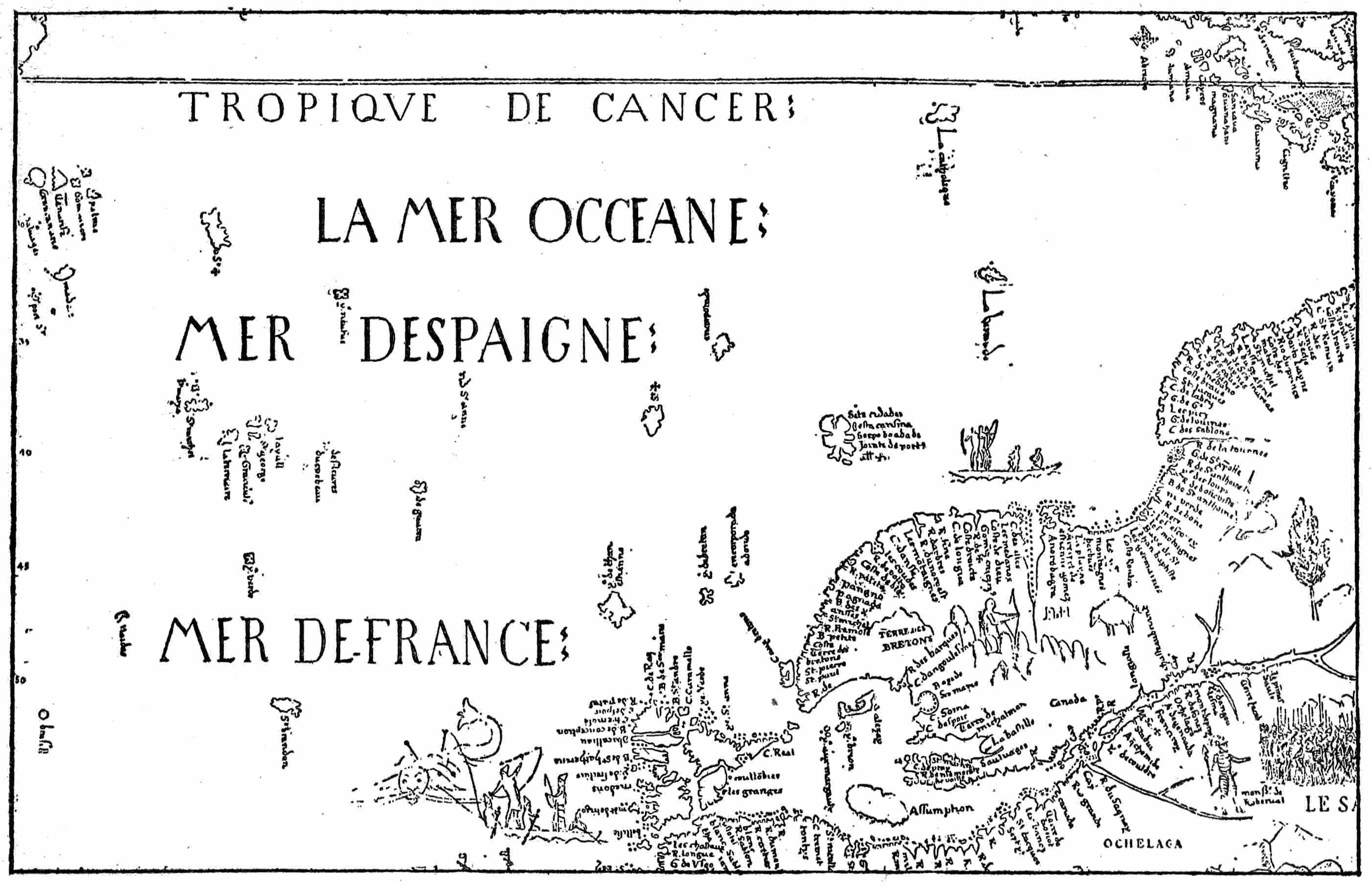 The Bretons shared in the Irish monk voyages, their Saint Malo appearing in tradition sometimes as a companion of Saint Brendan, sometimes as an imitator or competitor. Also their fishermen, with the Basques, from an early time had pushed out into remote regions of the sea. The Pizigani map of 136710 (Fig. 2) represents a Breton voyage of adventure and disaster near one of9 les îles fantastiques, appearing for the first time thereon. Their presence on the American shore in the years shortly following Cabot’s discovery is commemorated by Cape Breton Island.