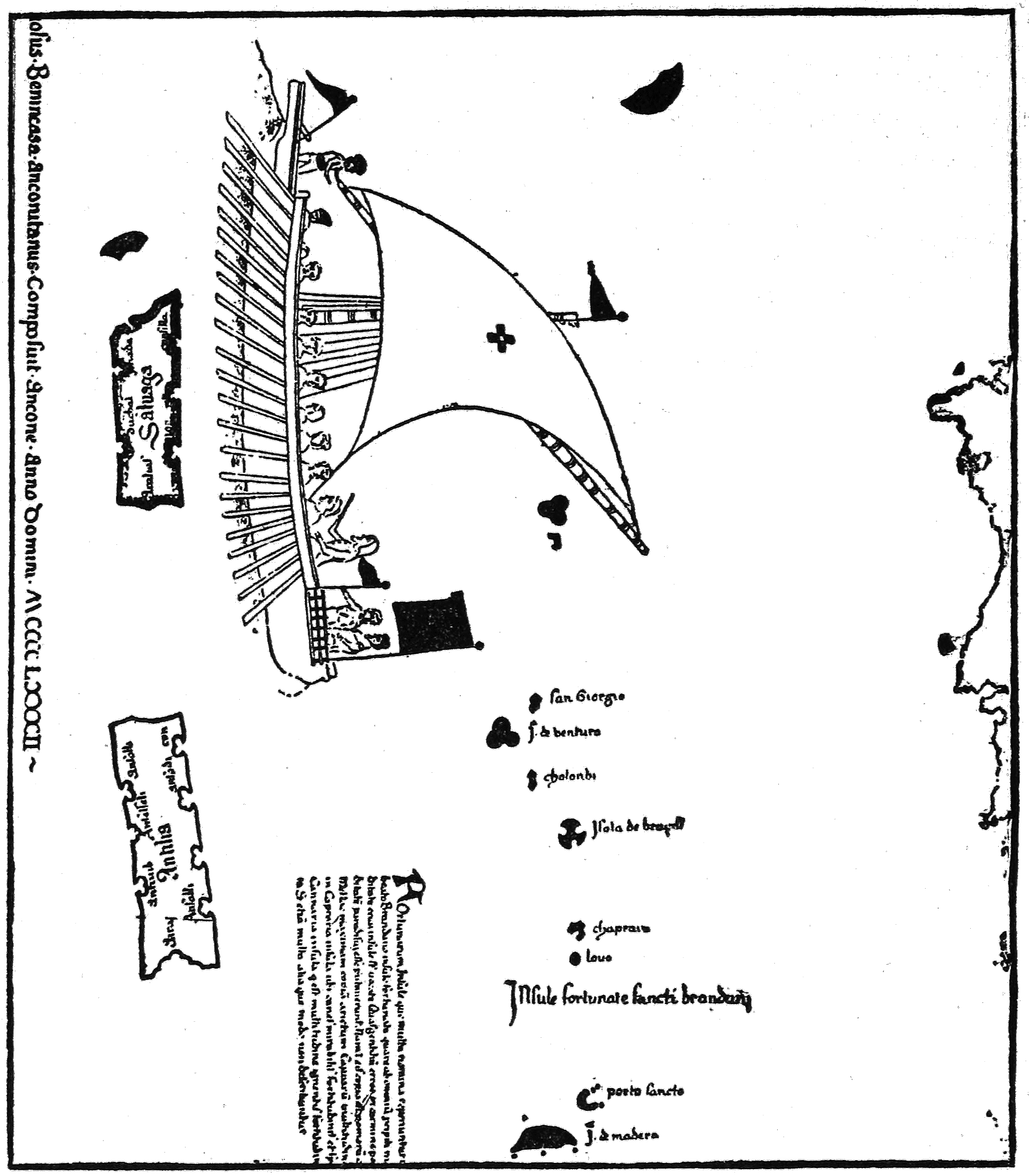 Ireland was never subject to Rome, though influenced by Roman trade and culture. From prehistoric times the Irish had done some sea roving, as their Imrama, or sea sagas, attest; and this roving was greatly stimulated in the first few centuries of conversion to Christianity by an abounding access of religious zeal. Irish monks seem to have settled in Iceland before the end of the eighth century and even to have sailed well beyond it. There are good reasons for believing that they had visited most of the islands of the eastern Atlantic archipelagoes. We cannot suppose that this rather reckless persistency ended there in such a period of expansion. It is quite possible that we owe to this trait the Island of Brazil, in the latitude of southern Ireland, as an American souvenir on so many medieval maps (Ch. IV). It is certain that the “Navigatio” of St. Brendan scattered St. Brandan Islands, real or fanciful, over the ocean wastes of a credulous cartography (Ch. III).