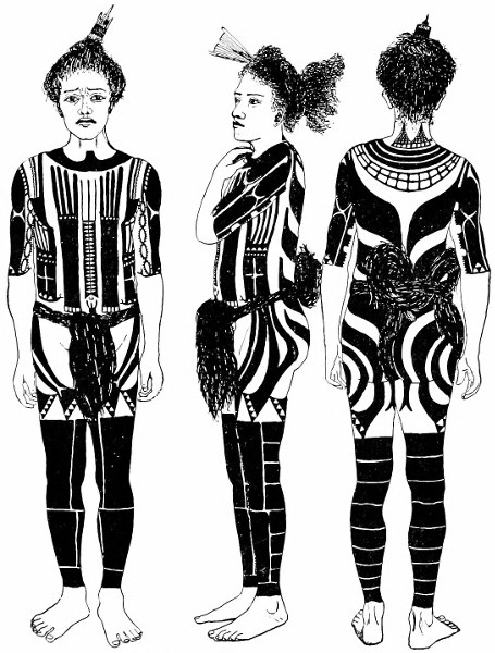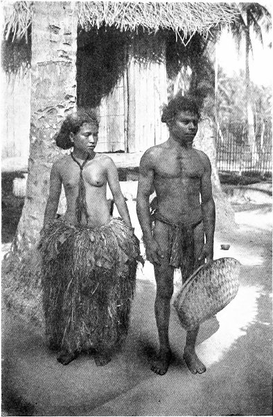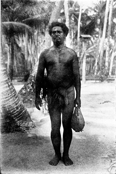 The natives of Uap, in number from five to six thousand, are of that perplexing type known generally as Micronesian, which covers a multitude of conjectures. The natives of each island have certain characteristics of form and features which make relationship to natives of other islands or groups of islands a possibility; but, on the other hand, there are such differences in language, in customs, in manner of living, that it is well-nigh impossible to state, with any degree of certainty, what or whence is the parent stock or predominant race. By way of generalization merely, and not as deciding the question, let me say that the people of Uap are of the Malayan type,—a light coffee-coloured skin; hair black[18] and inclined to wave or curl, not crinkly, like the Melanesian and African; eyes very dark brown, almost black; cheek bones rather high and noses inclined to be hooked, but not prominent. In this last feature they resemble other Polynesians and the Melanesians of New Guinea and The Solomon Islands. They are not as tall nor, on an average, as strongly built as the natives of Samoa, Fiji, or Tahiti. Since the sale of intoxicants and gunpowder has been prohibited, except to the trustworthy chiefs, they are gentle, docile, and lazy; formerly, under the very lax rule of Spain they were exceedingly troublesome and frequently made raids upon the Spanish and German traders, and were continuously at internecine war.
