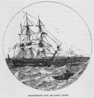 I followed his advice to great advantage. The first manoeuvre I saw performed on board was when, having got clear of all the shoals and dangers at the mouth of the Mersey, we shortened sail to allow the pilot to enter his boat, and the last person we were to see for many a day connected with home took his departure. He shook hands with the captain and mates, and wished us a good voyage and speedy return. I watched the boat as it proceeded towards the pilot-cutter with a curious feeling of interest. I was aroused by Gerard, who