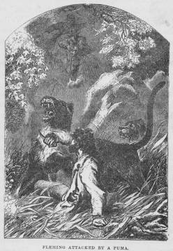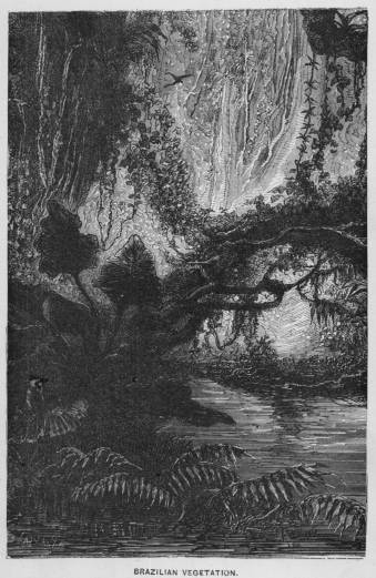 We, as usual, were fortunate, and got a trip, through the kindness of an English merchant, up the lake and a good way into the interior, when we could not help wondering at the magnificent display of tropical vegetation which we beheld. We also saw three of the most ferocious animals of the country. Scarcely had we landed when, as with our friend and several Indian attendants we were proceeding along the hanks of the stream, our friend wished to send a message to a cottage on the opposite side to desire the attendance of the master as a guide. There was a ford near, but the Indian who was told to go said he would swim his horse across.