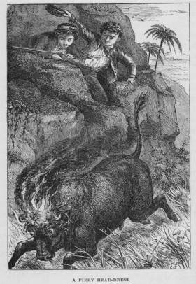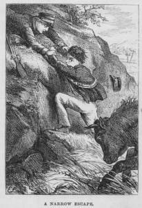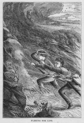 It was just daybreak when Ben Yool started up. “I can’t stand it any longer,” he exclaimed. “I’ll just go and see if those savages left any of their provisions behind them.” Without waking Mr Brand to know what he would say, off he went down the hill. How anxiously I waited his return! I was afraid that some of the savages might be lying in wait, and might catch him. My ear watched for the sound of his footsteps. Five—ten minutes—a quarter of an hour passed away. At last I thought I heard the breathing of a person toiling up