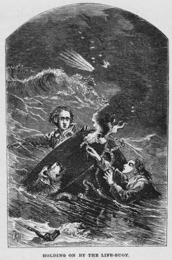 “I cannot see the poor wretch die without help, pirate though he may be,” exclaimed Cousin Silas, running down to the beach. I followed him. The log of timber and its freight reached the shore at the moment we got down to it. There was no look of recognition. We ran into the water, and cast loose the body; but our undertaking had been useless. A corpse lay before us; and though the features were distorted, we recognised them as those of Captain Bruno. We had just time to hurry back to our fort, when we saw a body of savages coming round a point at a little distance off.